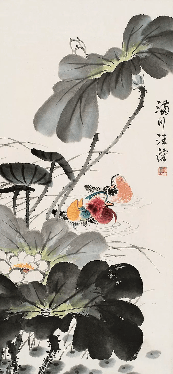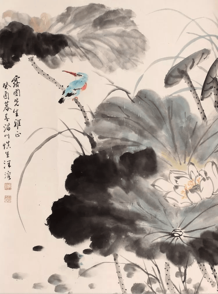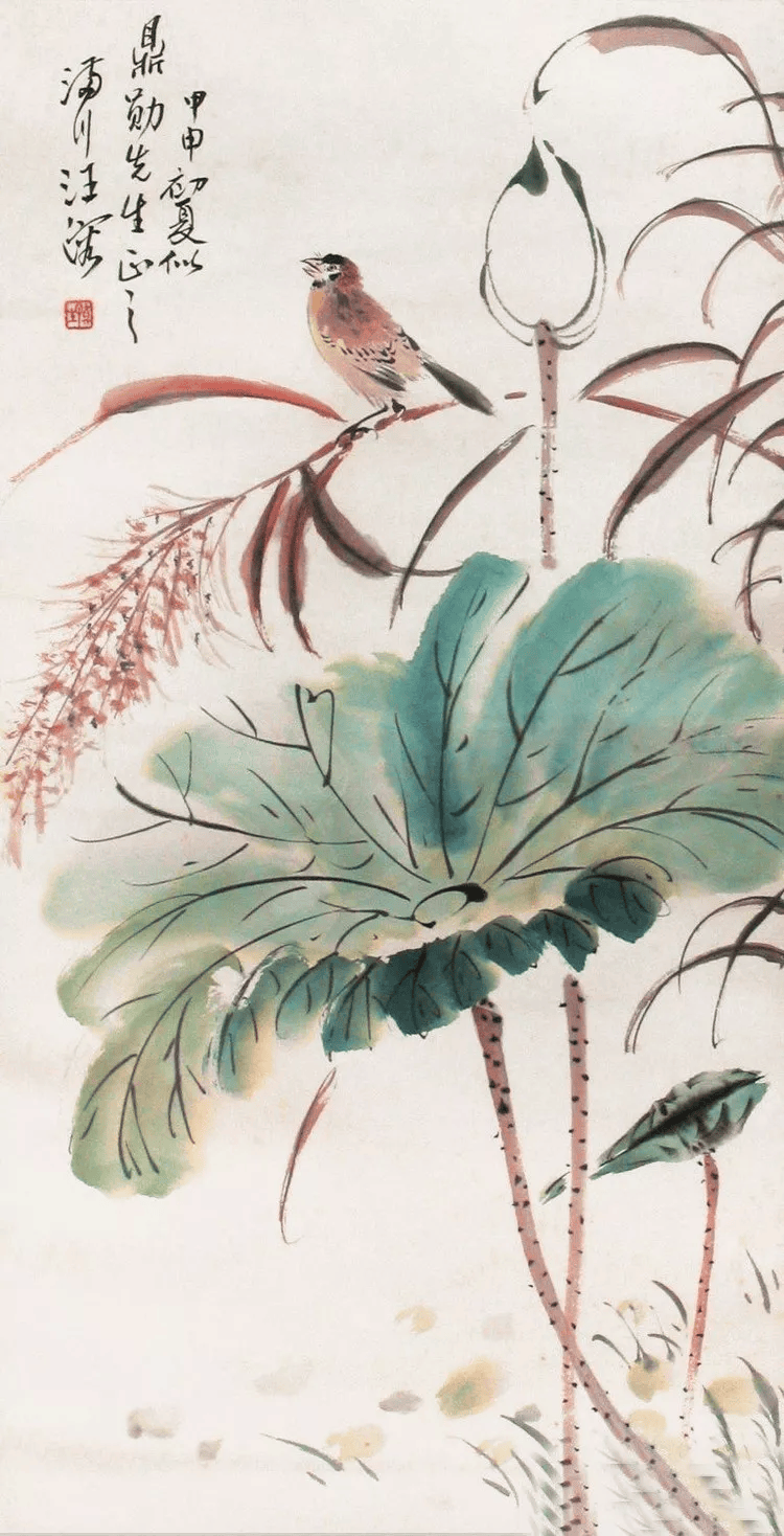 荷花是汪慎生情有独钟的题材,他的荷花清雅、平和、安静,展现在观者面前的是清风徐来的一片悠然荷塘,这与他的性格谦和、无争、朴实的性情极为一致,也正是因为这一点使得他的名字在现代画坛很少有人知道。