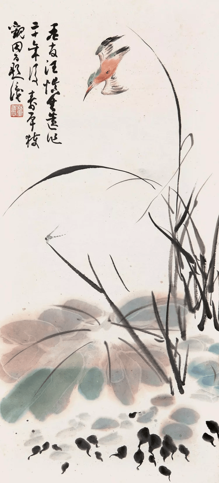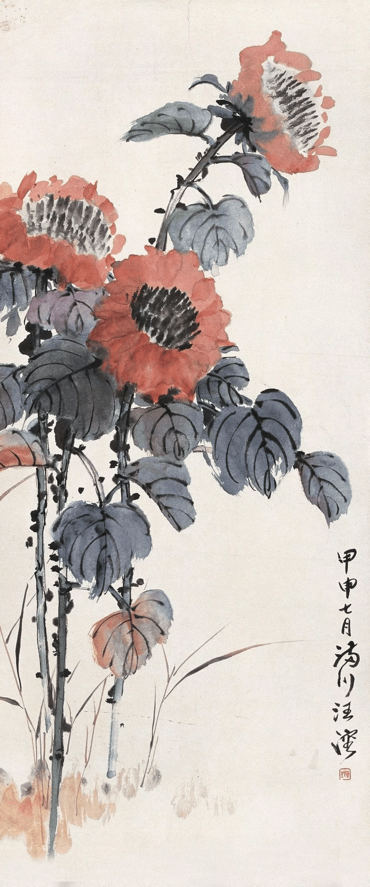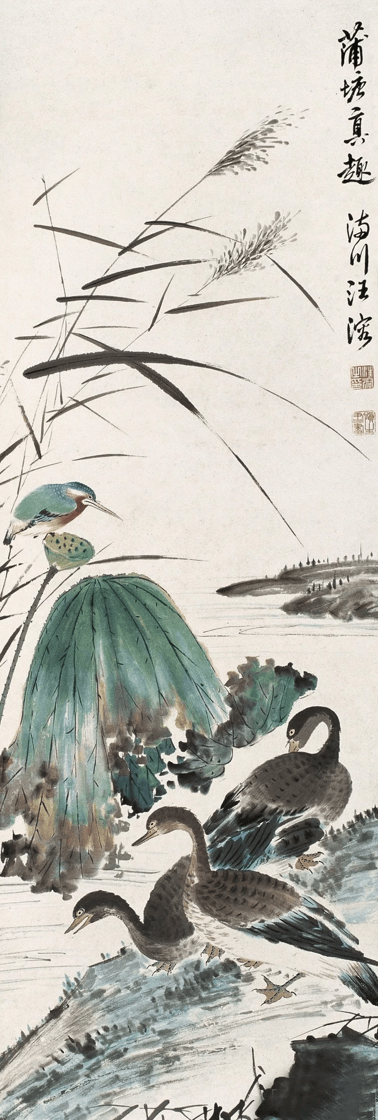 荷花是汪慎生情有独钟的题材,他的荷花清雅、平和、安静,展现在观者面前的是清风徐来的一片悠然荷塘,这与他的性格谦和、无争、朴实的性情极为一致,也正是因为这一点使得他的名字在现代画坛很少有人知道。