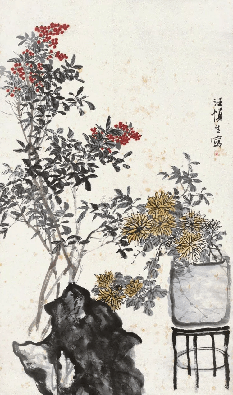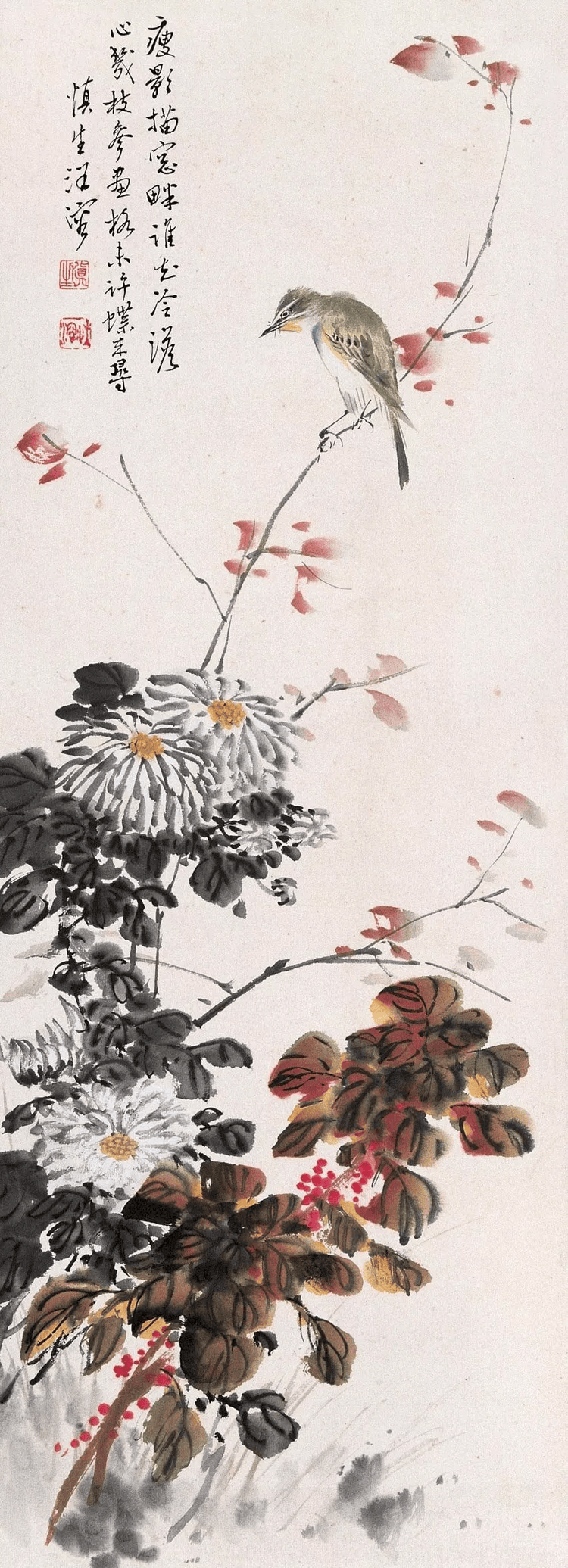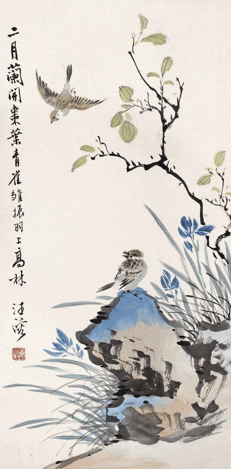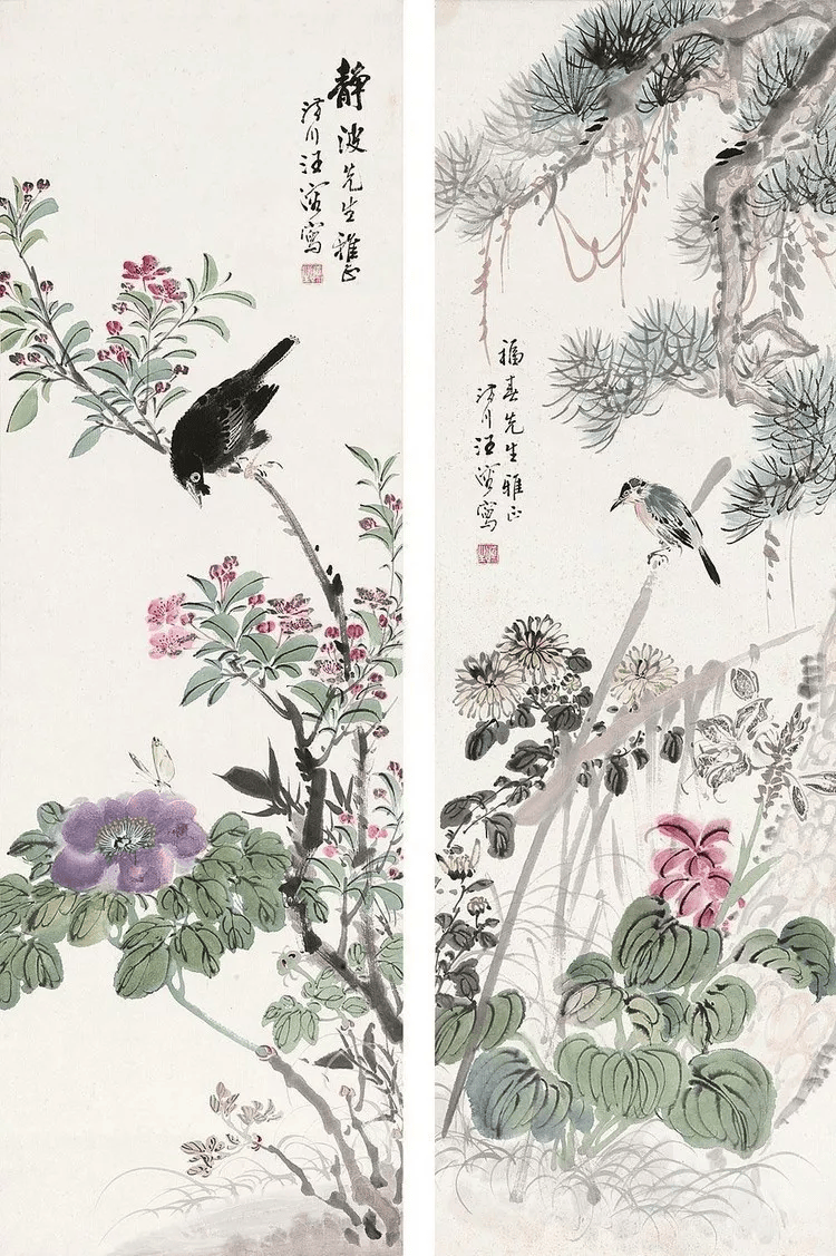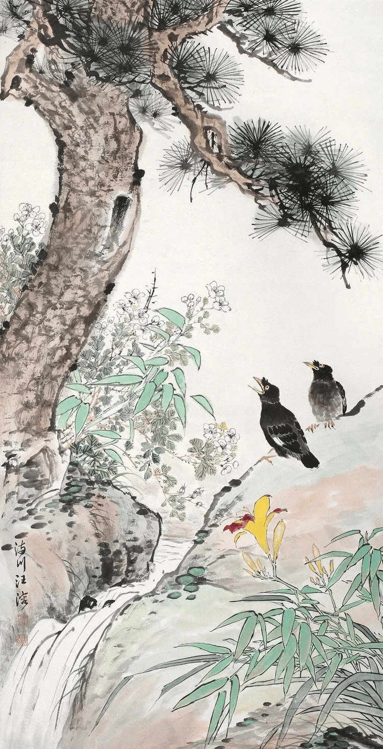 他常去故宫博物院观摩历代名画,山水画学石涛、石谿;花鸟画初学陈淳、华喦、孙隆等。汪慎生心摹手追,笔耕不辍,废寝忘食,画艺精进,甚至临摹陈白阳能以假乱真。