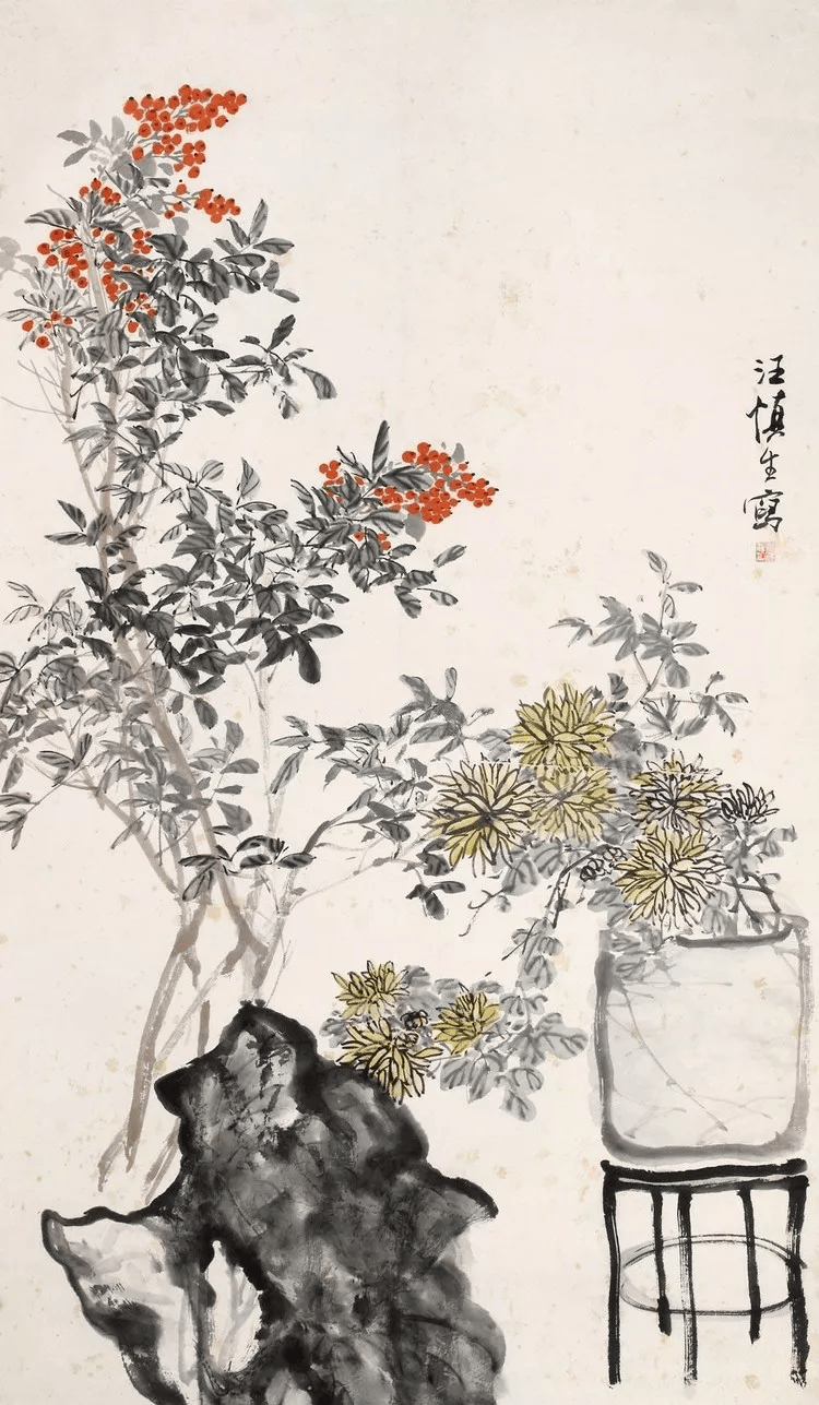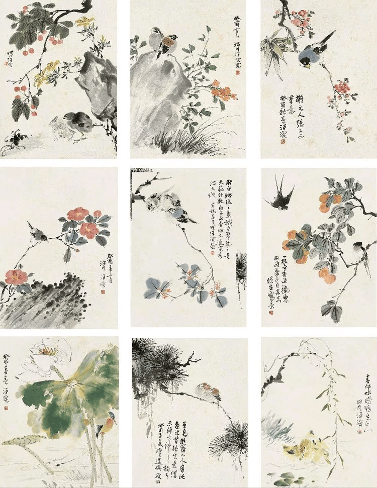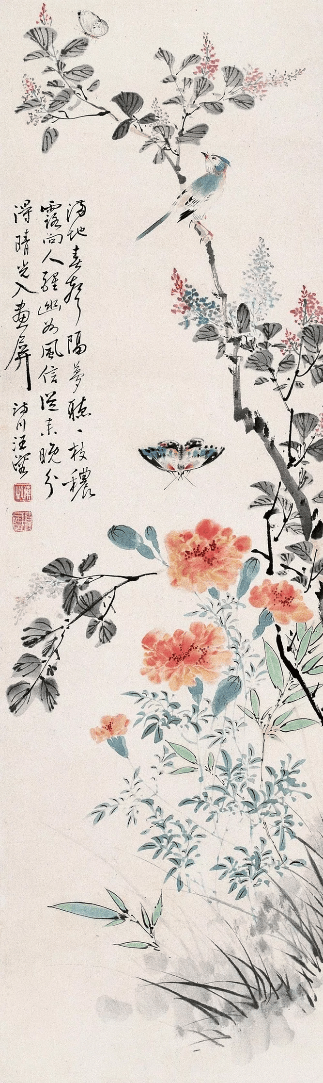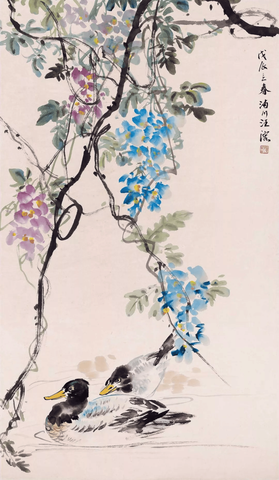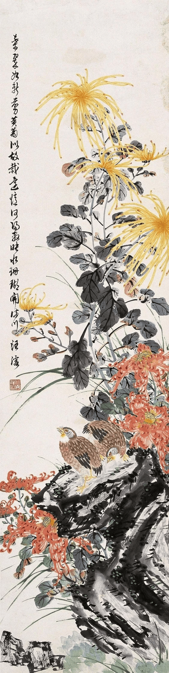 他常去故宫博物院观摩历代名画,山水画学石涛、石谿;花鸟画初学陈淳、华喦、孙隆等。汪慎生心摹手追,笔耕不辍,废寝忘食,画艺精进,甚至临摹陈白阳能以假乱真。