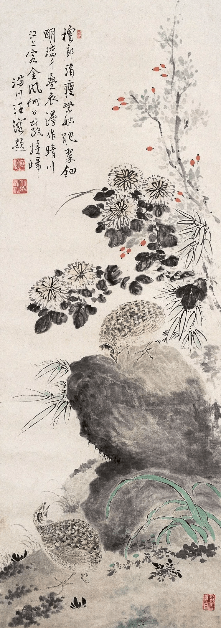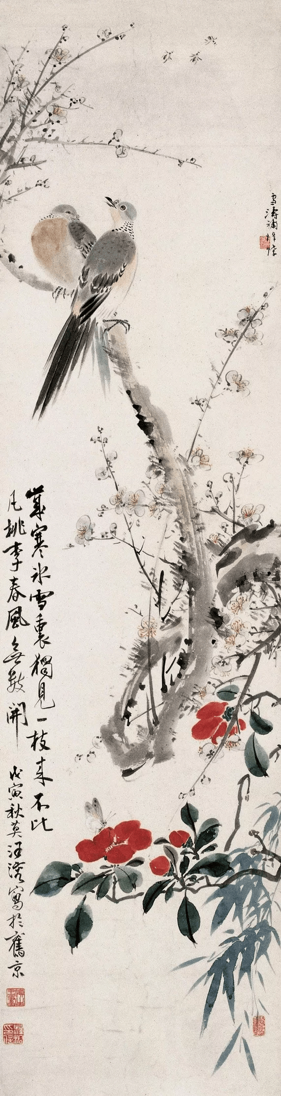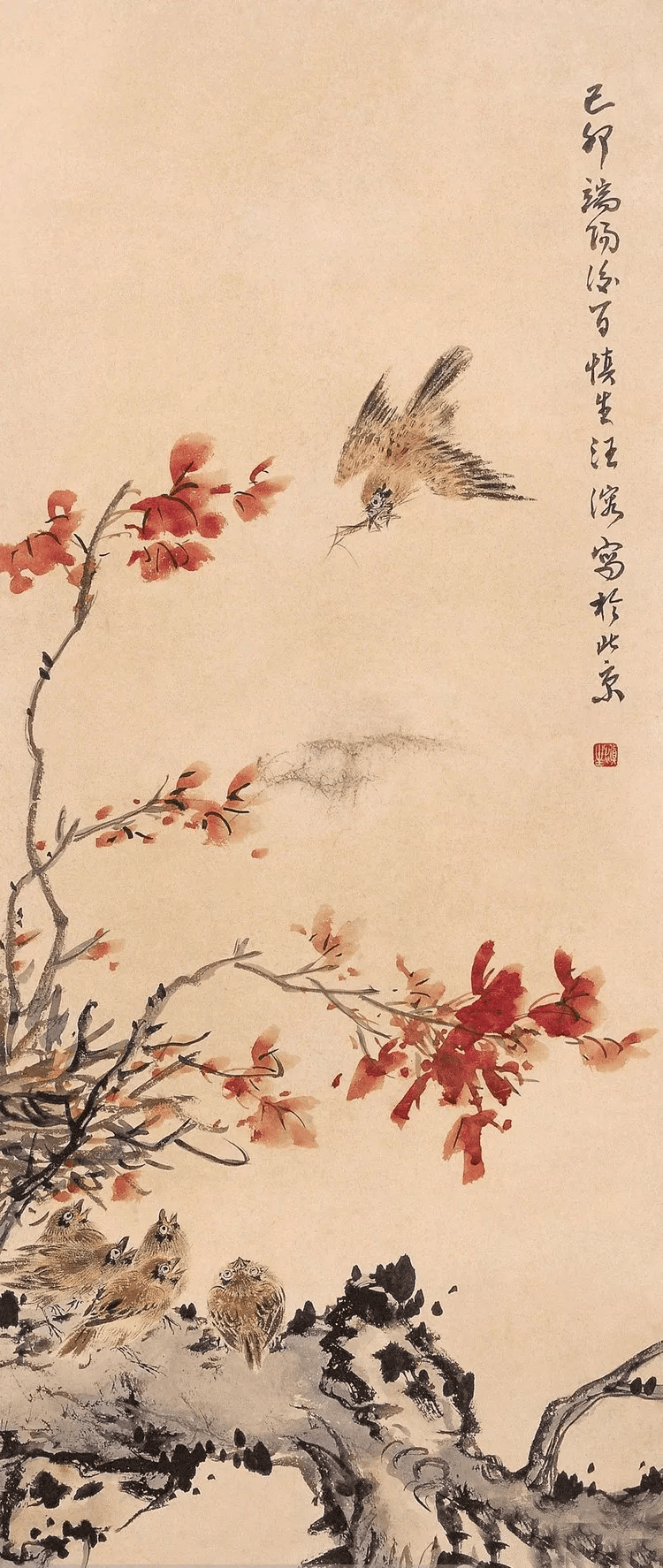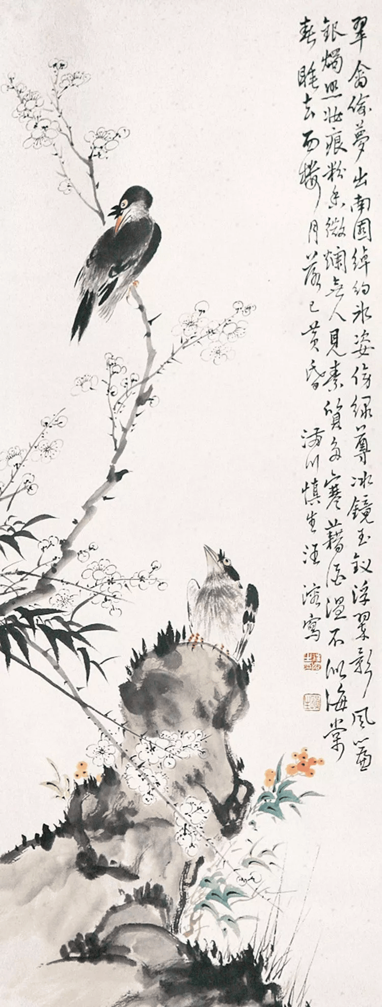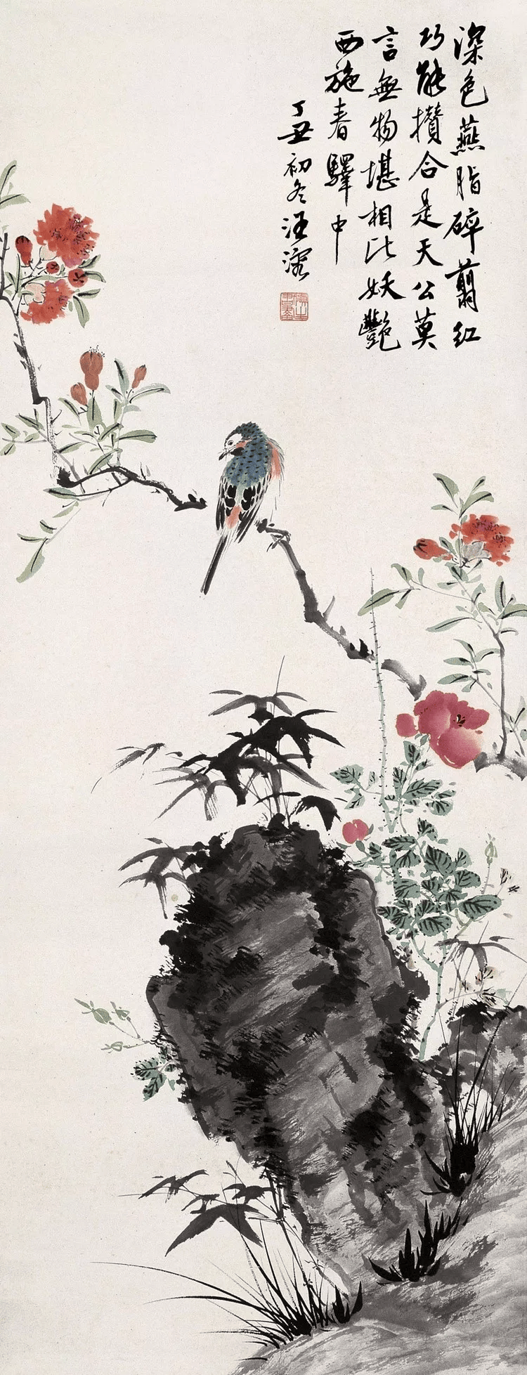 他常去故宫博物院观摩历代名画,山水画学石涛、石谿;花鸟画初学陈淳、华喦、孙隆等。汪慎生心摹手追,笔耕不辍,废寝忘食,画艺精进,甚至临摹陈白阳能以假乱真。