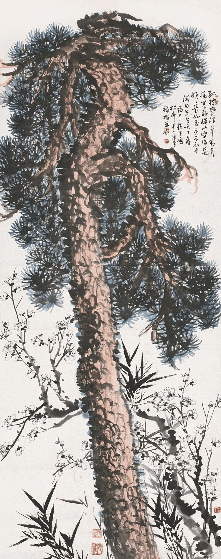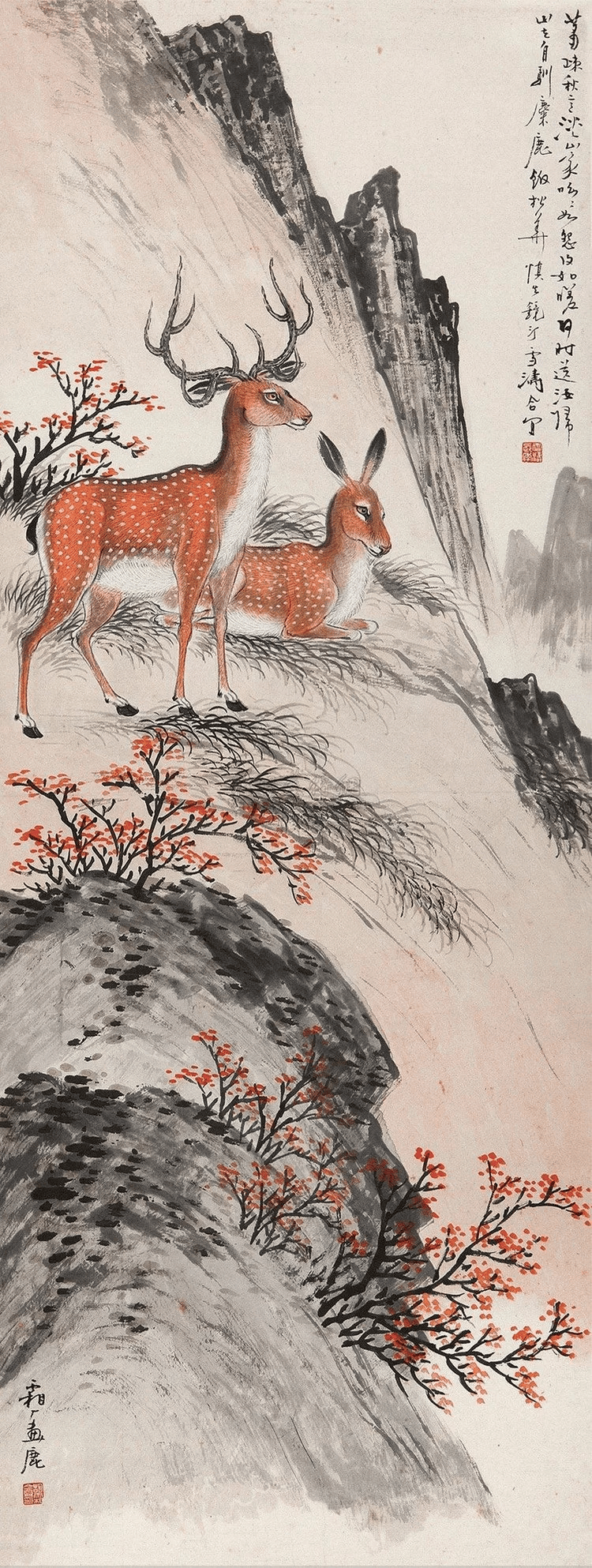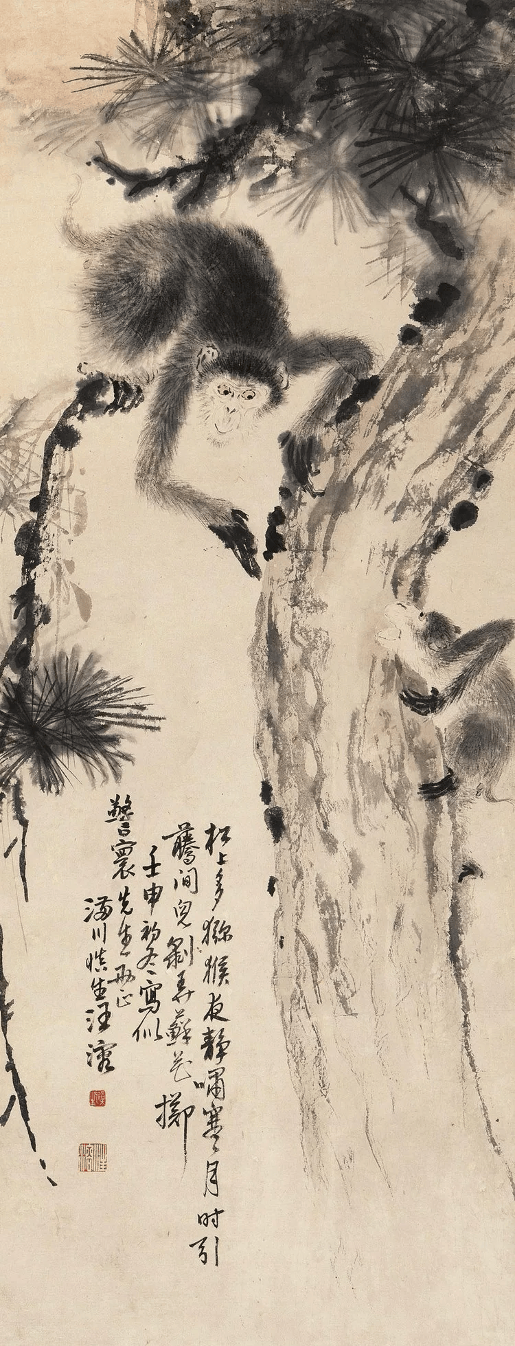1935年,他第一次参加“中日绘画第三次联合展览”,他的代表作《古柏猕猴巨幅》因构图新颖、画面生动活泼,极富感染力,一举成名。