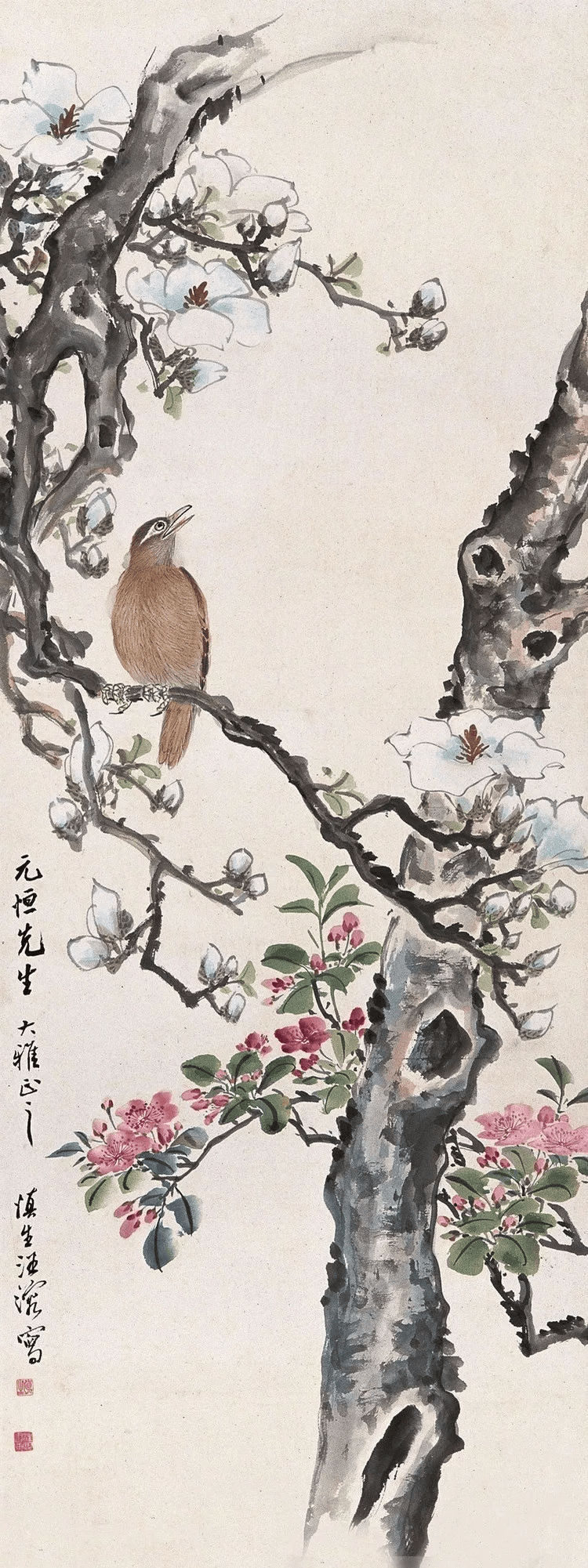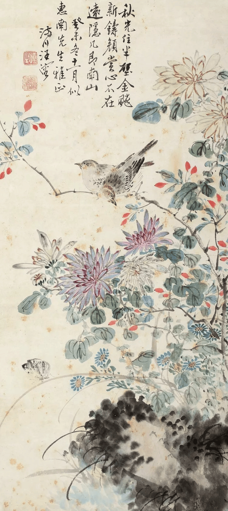 大千先生闻听此言,赶忙摆手,惶恐地说:“山水,我画不过溥心畲、吴湖帆;花卉翎毛,我画不过于非闇 、汪慎生;人物仕女,我画不过徐燕荪。”大千先生的这番谈吐绝非自谦之语,倒是徐先生的话太显溢美了。大千先生的话足可佐证汪慎老在画坛的艺术地位。