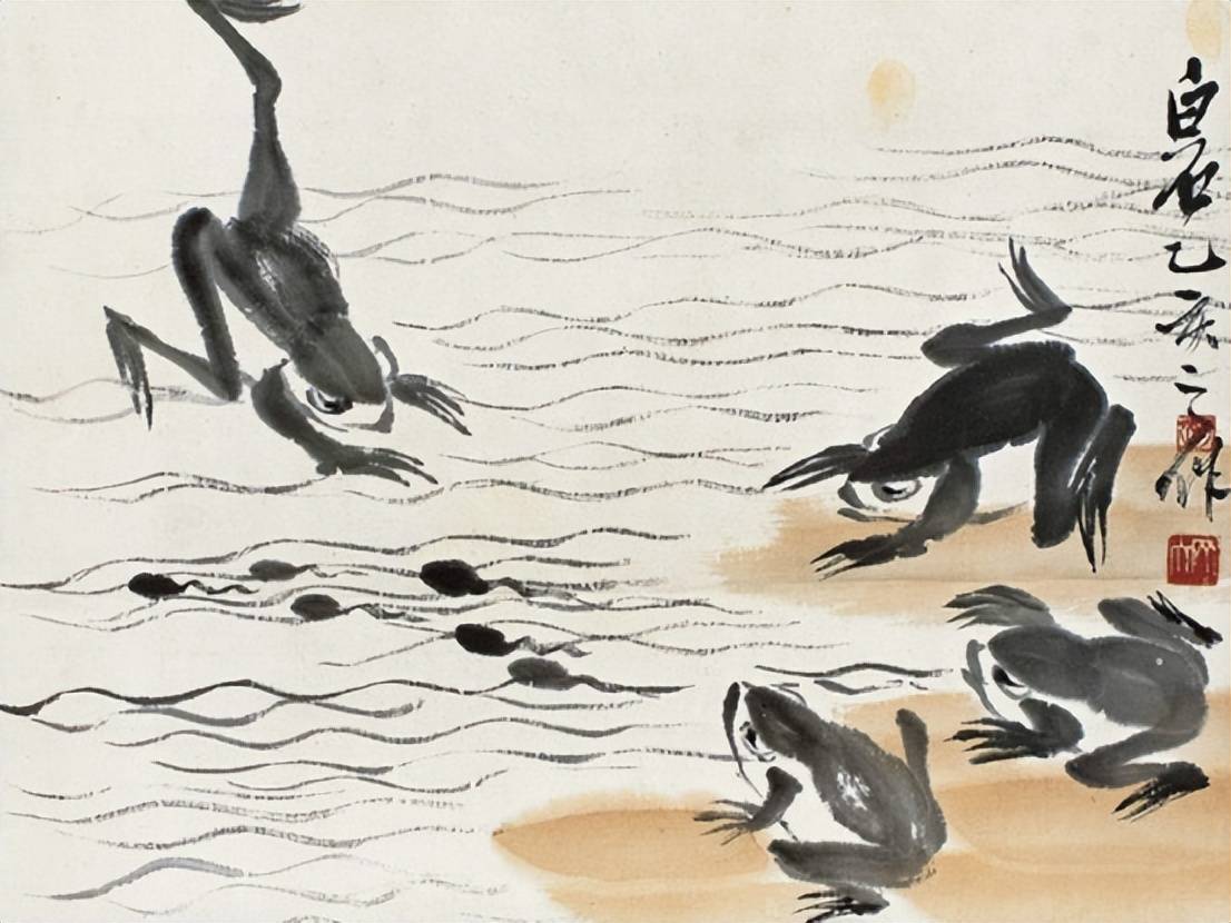 即使到了晚年,齐白石依然坚持创作,且其作品的质量和深度没有丝毫减弱。1951年,他创作了《蛙声十里出山泉》这幅作品,作品一经问世便引起了广泛的讨论。2010年,曾发现作家老舍写给齐白石的《命题求画信函》,而齐白石是在收到这封信后才开始创作这幅画。所以普遍认为,《蛙声十里出山泉》的核心构思来自老舍,而齐白石则是根据这一构思完成了画作。