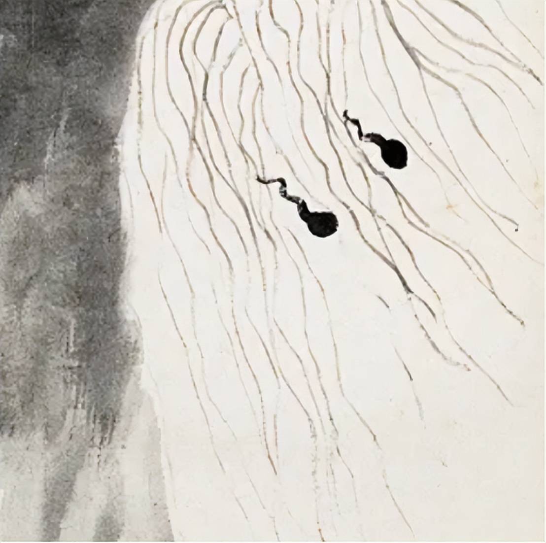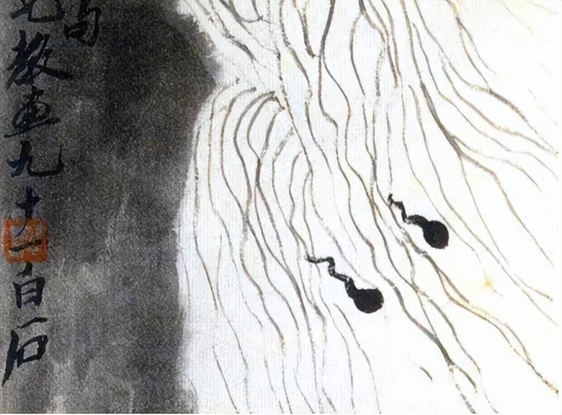 形似是中国艺术创作的基本要求,从古至今,无论是象形文字还是绘画作品,都强调对物体外形的描绘。齐白石的画作中,也始终坚持这一原则,但在此基础上,他更加注重表现自己的主观情感。这种情感表达通常表现为在形似的基础上略微做些不完全相似的改变,齐白石认为,如果画得过于形似,就显得乏味、无趣,甚至可能有欺骗观众的嫌疑。只有在把握好形似和神似的分寸,才能真正展现画作的美感。