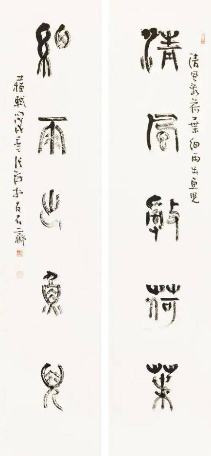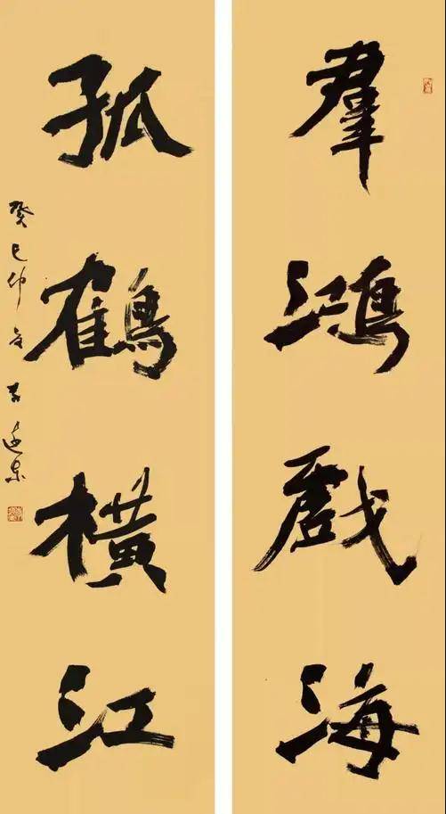 爆出的第一个瓜就是行书特等奖的评出,谢兴华先生的一幅十四字楹联作品赢得了评委的钟意,一举斩获50万大奖,平均一个字价值超过3.5万,可谓一字万金,跻身2025年最贵的书法作品之一。