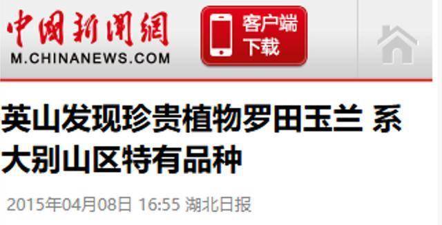 信息来源:中国新闻网英山发现珍贵植物罗田玉兰 系大别山区特有品种 2015-4-8