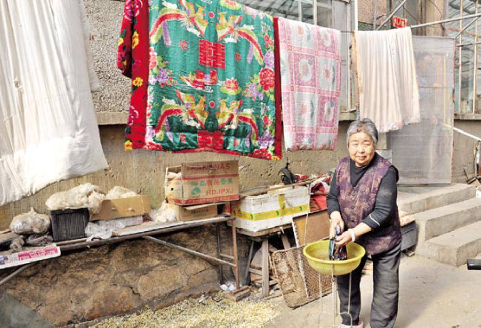 张母正在院子里晾晒衣物,听到声音回头,看到儿子身边的陌生女人,愣住了。