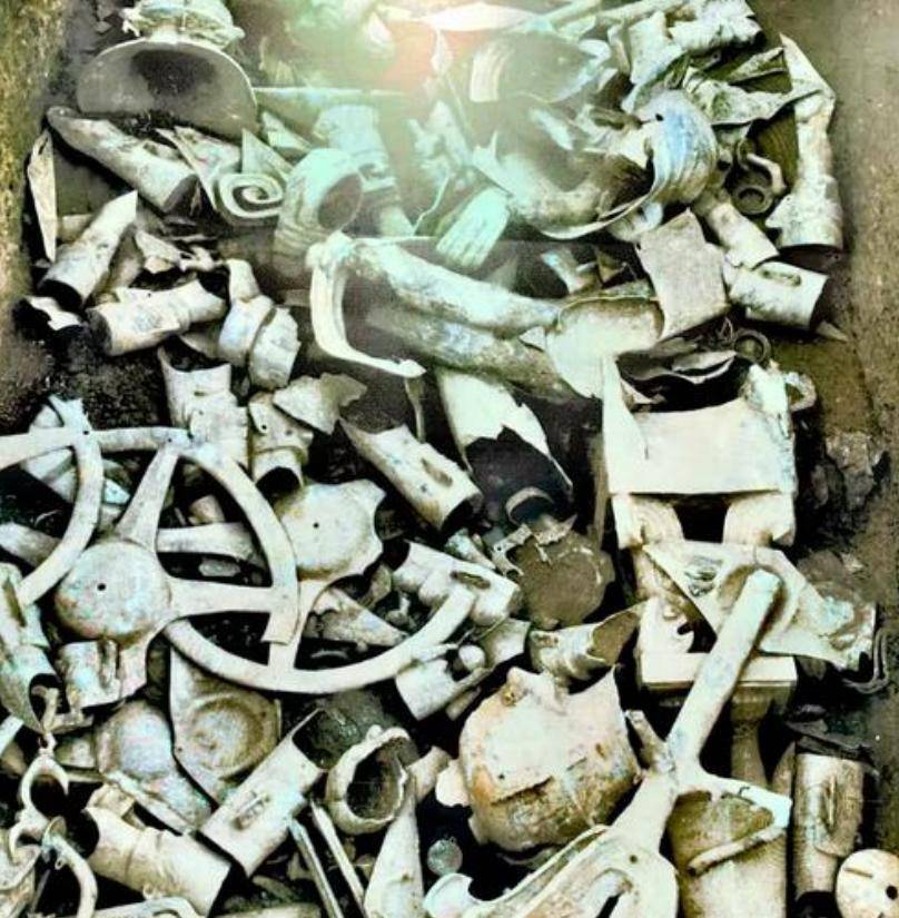 所有祭祀坑中的器物都有被砸烂、烧焦的痕迹,青铜神树断裂成数节,玉璋烧至发白。