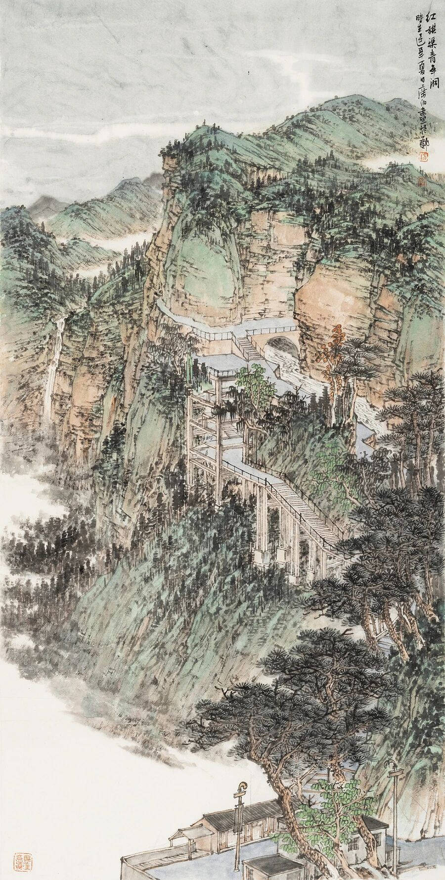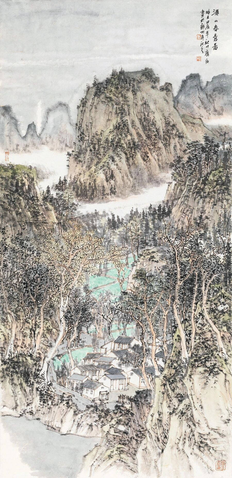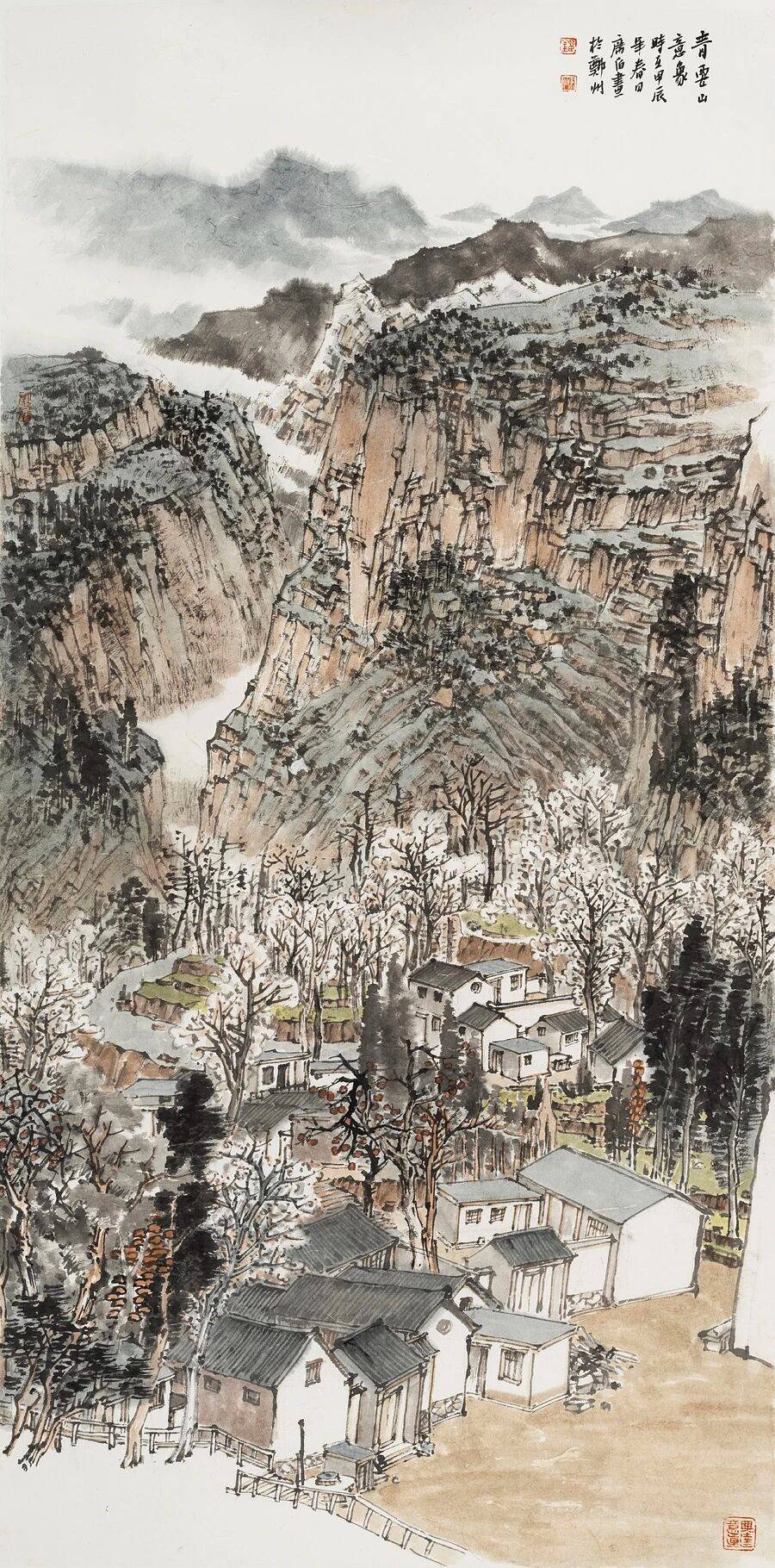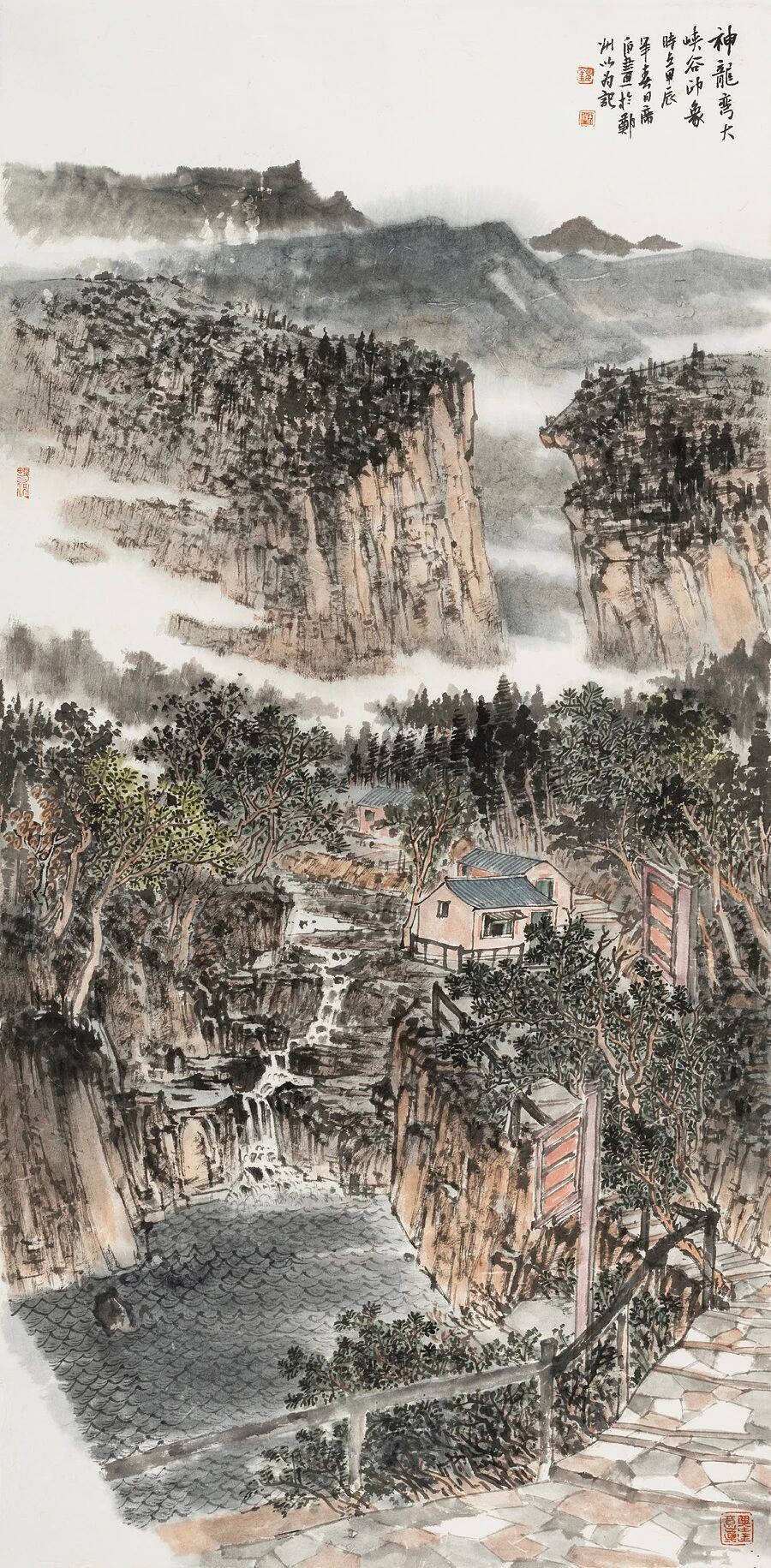 这技法哪里是 “承袭古法” 可束?是把青绿的雅揉进烟火的暖,把皴擦的刚融成晕染的柔;是让山有了岁月的痕,云有了流动的姿,村落有了生活的温。他的画是四季的容器:春藏在松梢的翠里,夏裹在溪涧的凉里,秋栖在叶尖的黄里,冬卧在崖壁的雪里,而人间的暖,就藏在每一扇半开的窗、每一道蜿蜒的径里。