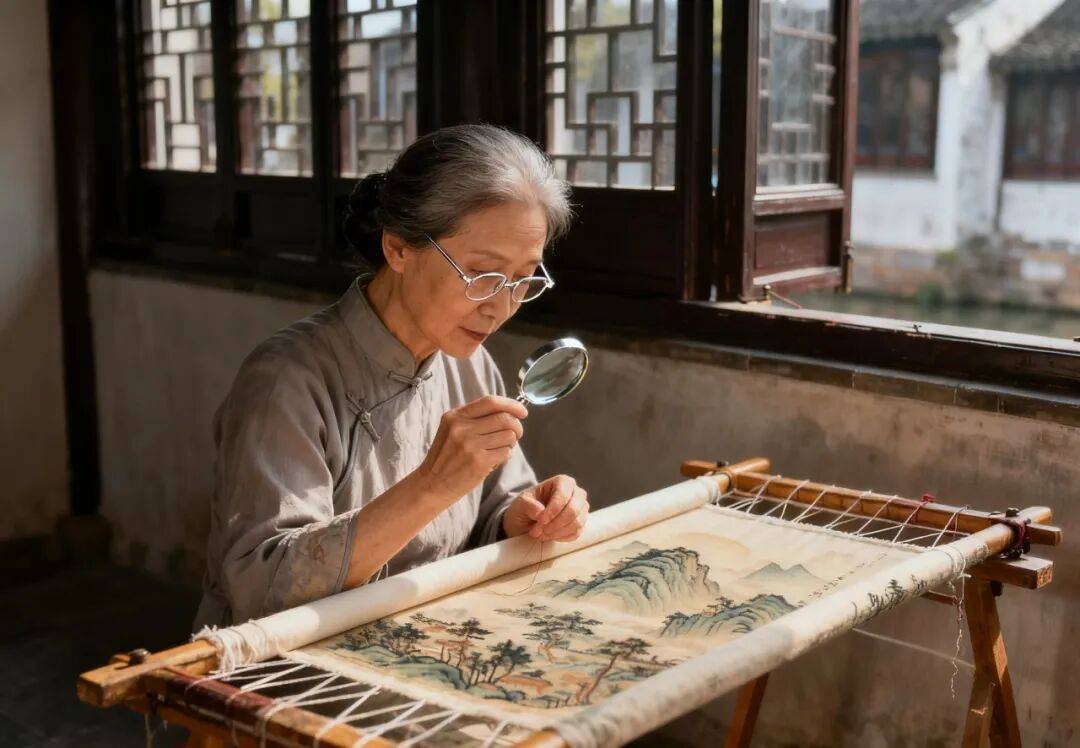 技之神,在天地之中写不朽篇章。明万历二十三年秋,南京云锦坊内机杼如雨。文徵明之孙文震亨立于姑苏绣娘韩希孟的绷架前,见素绢上《宋元名迹册》八帧绣画渐次呈现:黄荃《苹婆山鸟》羽翼蓬松,赵孟頫《八骏图》鬃毛如云......他提笔在《绣谱》中记道:“凡绣,苏郡为魁。其劈丝如发,设色如画,竟不知是画是绣。”