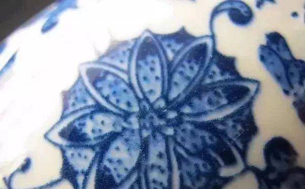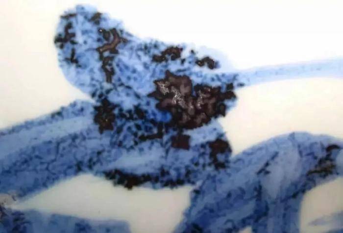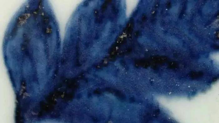 放大镜观察瓷器三:看青花上的铁斑一般认为有黑色小点即为铁斑,铁斑多证明是进口青花料,即为真品。可人工做作的黑色斑点很易显眼,但人工黑斑是浮在青花上,形状是滴珠状,周边圆滑,这不是在原料中自然形成,初学者易把仿品当真品。
