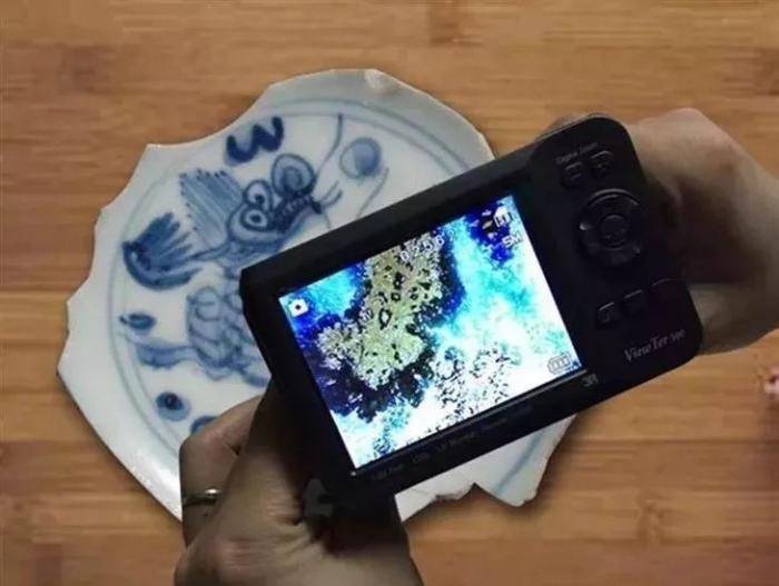 放大镜观察瓷器二:看吃土有人不用放大镜也能直视有没有土。尤其是表面粘的土很多,许多开片的小缝里也有土,即为“吃土”,吃土便可定为“老货”。这种断定太表面化了,是错误的。放大镜观察瓷器二正:吃土不吃土决不可看表面。表面的土可以洗去、擦干净,如果表面的土粘得牢、擦不去这更是人工造的,不可信。真吃土不在表层,是进入胎骨和釉下,它通过微孔沁入釉层,成为点状的“土斑”。土斑很小用眼直接看不到,必须在放大镜下才可见“土斑”。有的瓷器入土时间长,在土内恒温下并不开片,要出土后才会开片,所以真品吃土在不开片的地方,而开片的小缝内并没有土吃进去。这就更证明是自然“吃土”而不是人工做作,当然是老货。