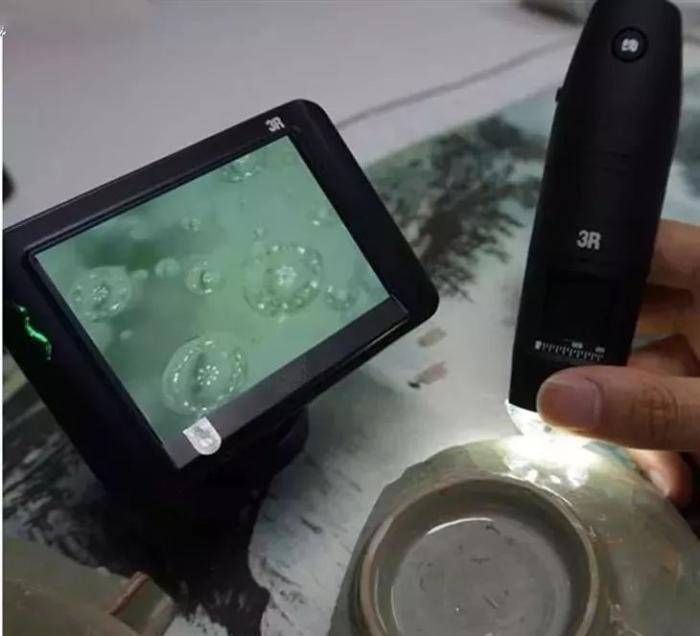现代青花瓷贴锈斑放大镜观察瓷器四:上浮与下沉是区别真仿青花老品由于工艺上不同,则青花入骨,仿品青花上浮、不得入骨,差别很明显。在放大镜下看,可见青花上布满一层白釉,全是许多气泡(白而明亮)盖在青花上,这是真正的青花老货。而仿品青花上层基本看不到白色气泡,只看到一片蓝色和杂质,或白色结晶点,这是目前造假者还做不到的地方。