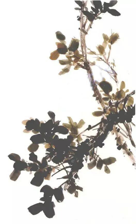 用赭墨或直接用深浅墨色画出枝干,注意构图要有远近虚实的变化。