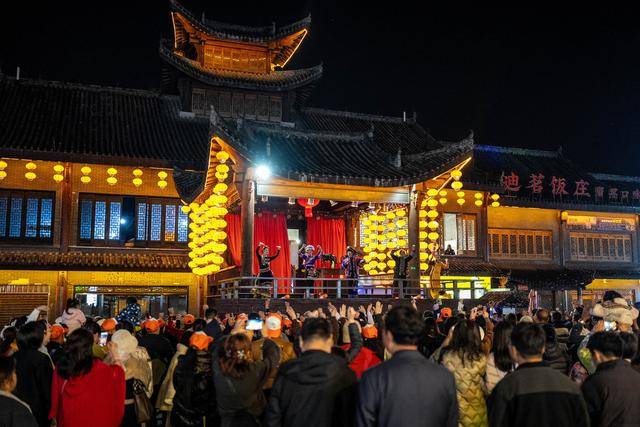 2025年11月29日,游客在普洱市茶马古城旅游小镇观看舞蹈演出。