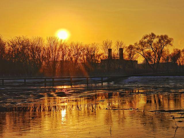 仿佛镀上了一层金色的光,北京冬至日邂逅最美夕阳