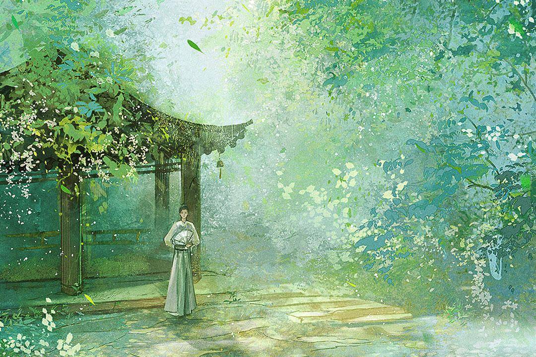 从宫苑飘出的飞花迎面扑来,轻轻地从我脸颊上滑过,好像是在安慰我,为我送行。
