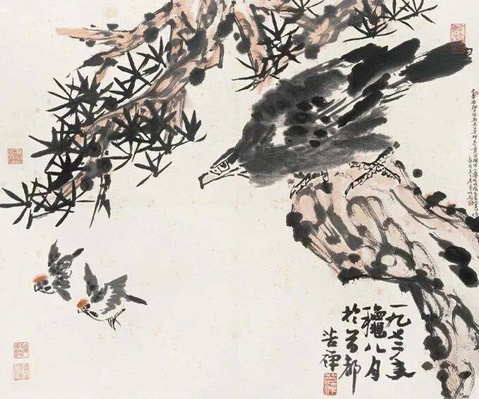他主张“书至画为高度,画至书为极则”,因此,其作品具有笔墨厚重豪放、气势磅礴逼人、意态雄深纵横、形象洗练鲜明的独特风格,树立了大写意花鸟画的新风范。