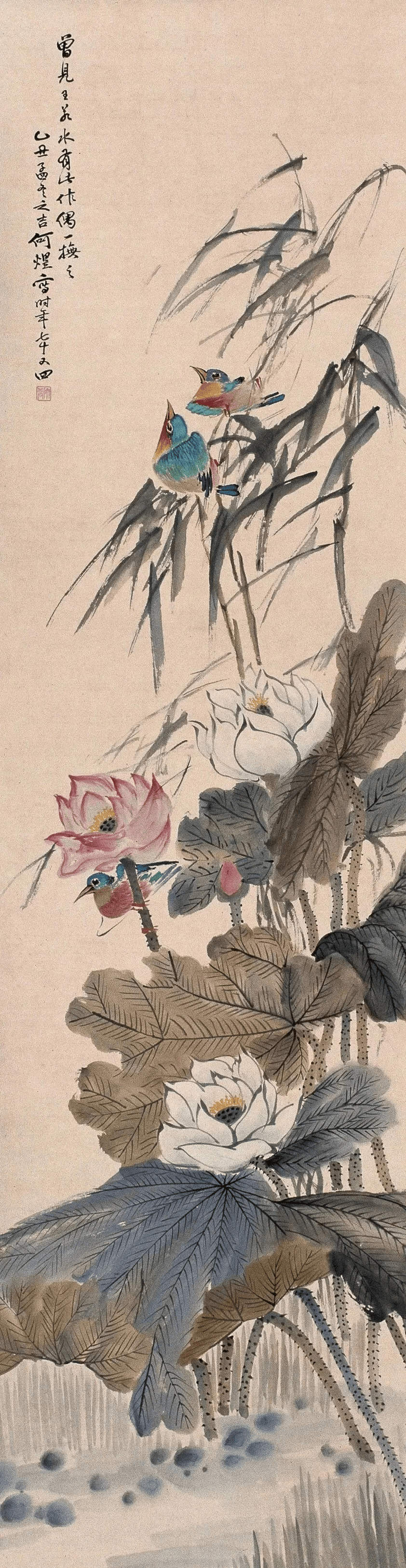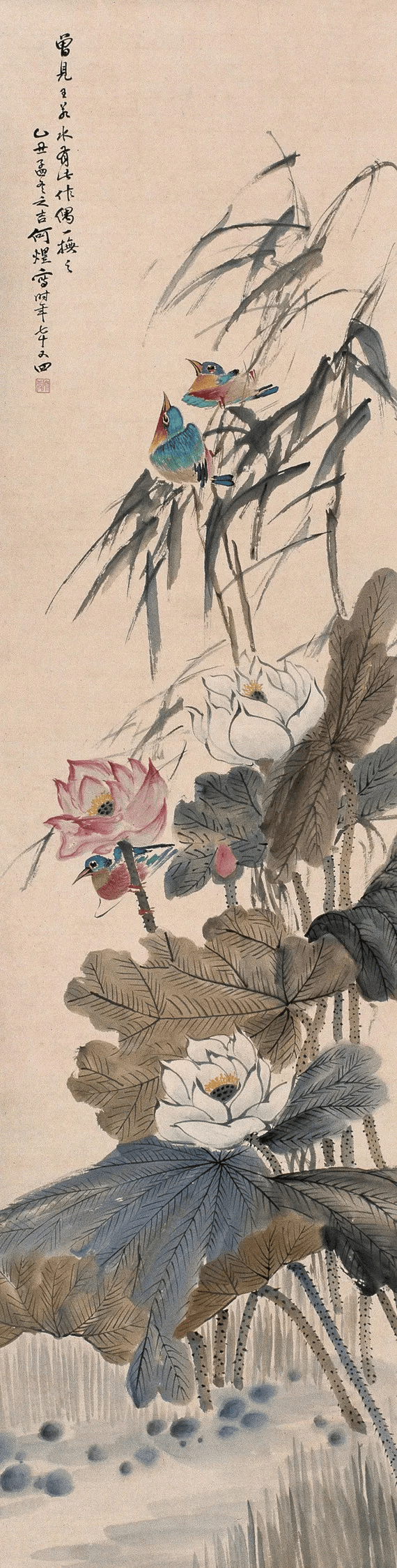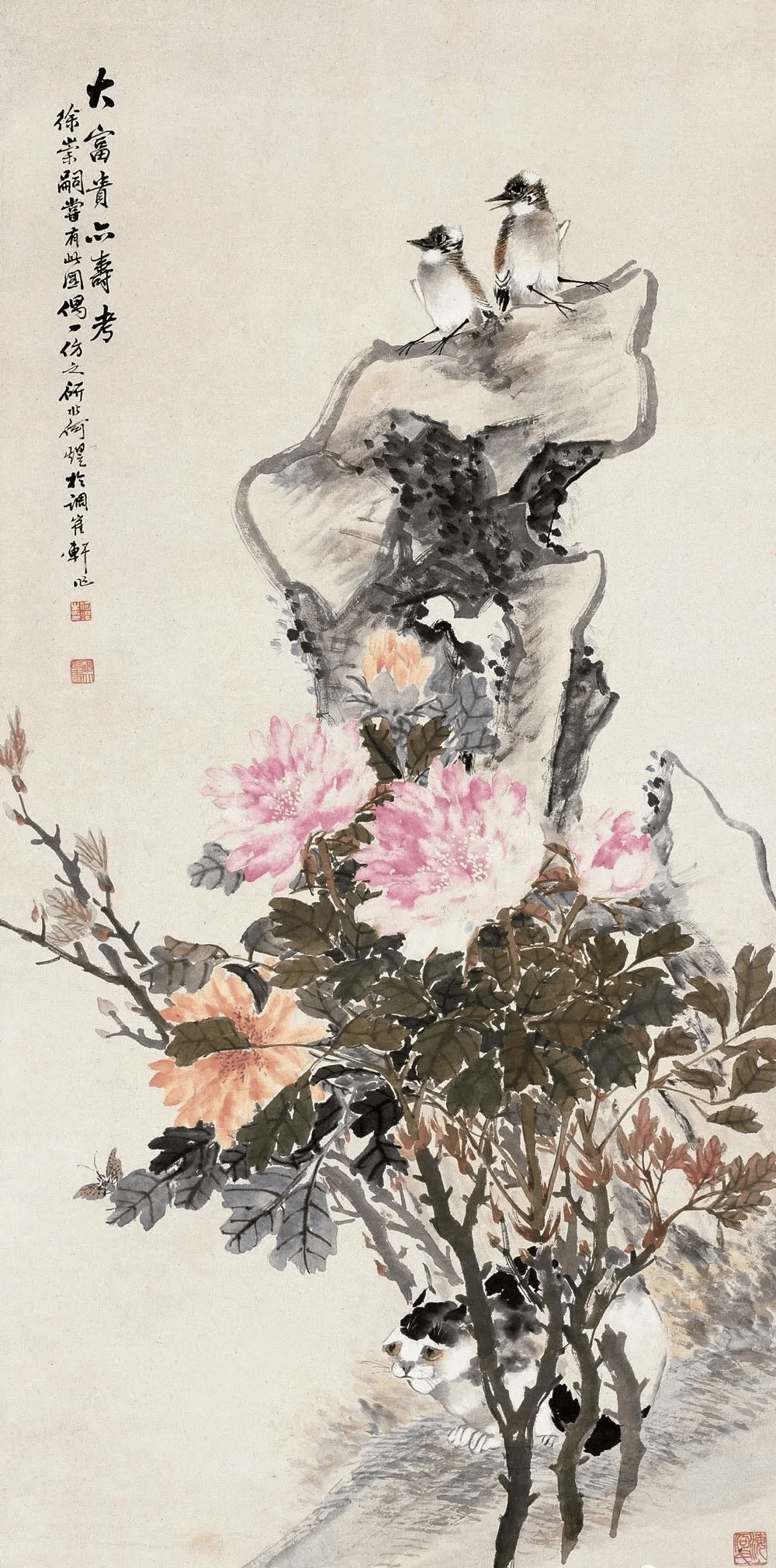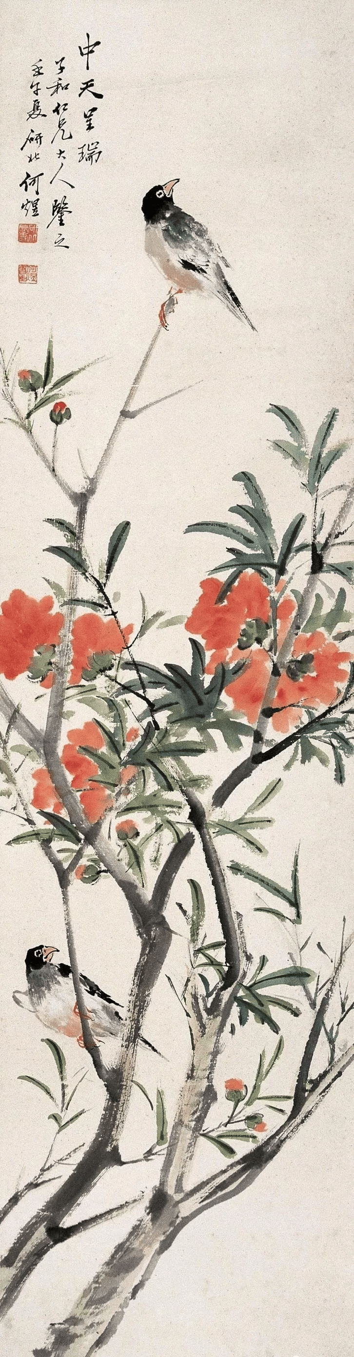 在清末民初的上海滩,何煜的花鸟画以“雅俗共赏”的独特魅力独树一帜。他笔下的花鸟,既非纯粹文人画的孤高清冷,亦非市井艺术的粗陋直白,而是巧妙地将市井烟火气与文人雅趣熔铸一炉,形成一种“热烈的雅致”。