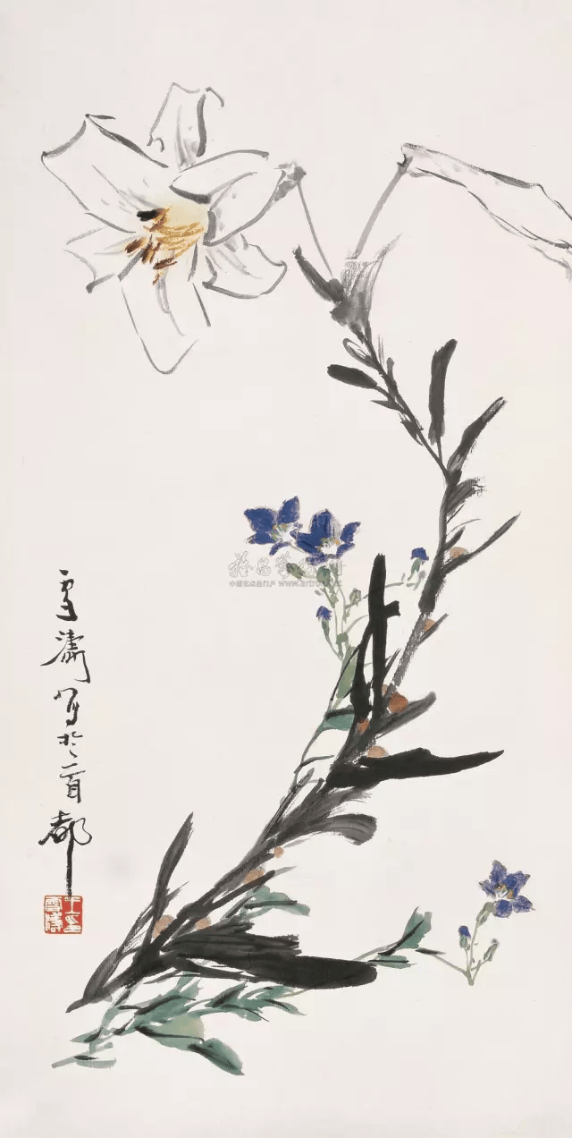石绿朱砂点雌蕊,雄蕊上色需变法。