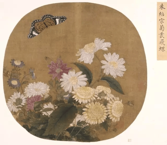 南宋 朱绍宗《菊丛飞蝶图》纨扇 绢本设色 23.7×24.4厘米 故宫博物院藏