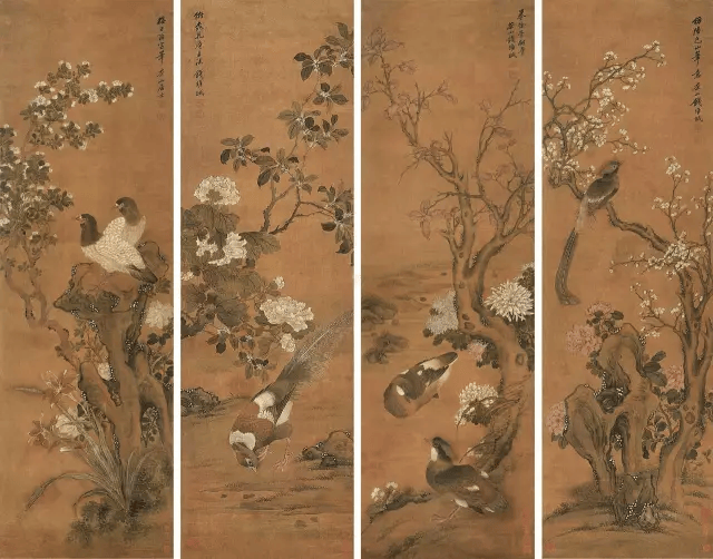 明 吕纪(1477~)《桂菊山禽图》绢本设色 192×107厘米故宫博物院藏