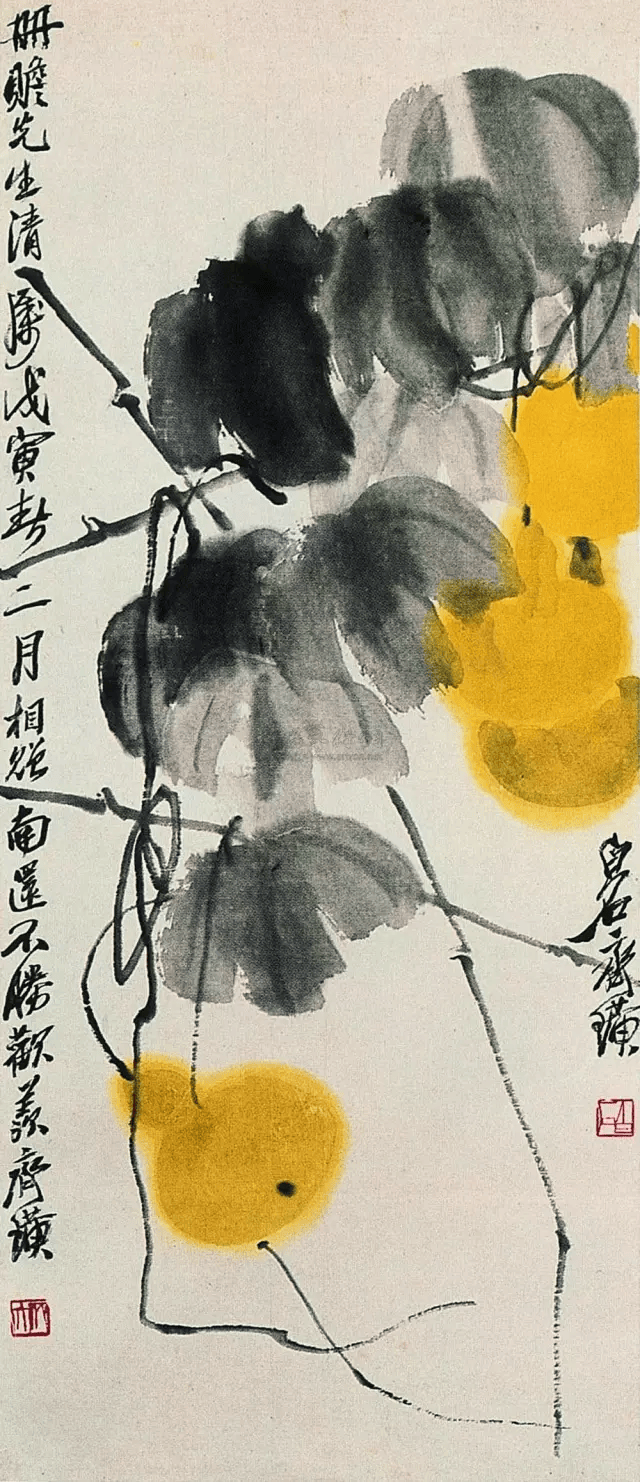 刻画葫芦侧锋点,颜色要浓笔要软。