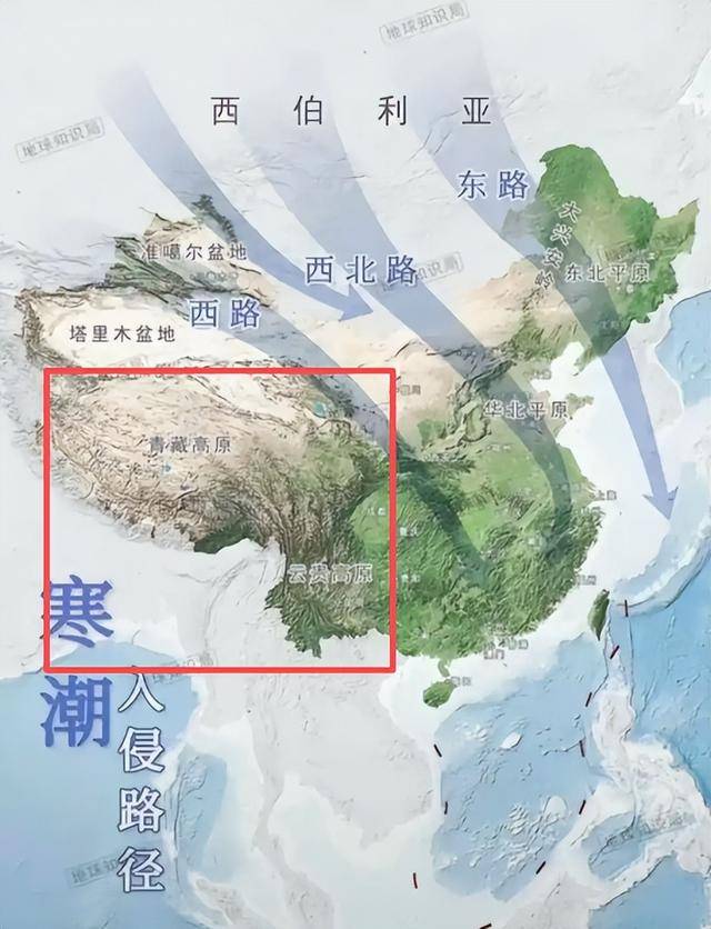 除了守护安全,青藏高原还是一台不耗电的巨型空调,冬天的时候,西伯利亚的寒流浩浩荡荡南下,撞上这片高原就被劈成两股。