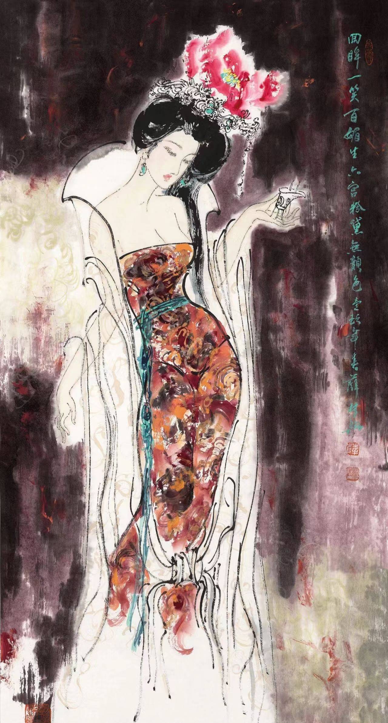 他以近百个古典美人形象,重构了中国水墨画中的女性审美体系,其中“薛贵妃”更成为其艺术标志。