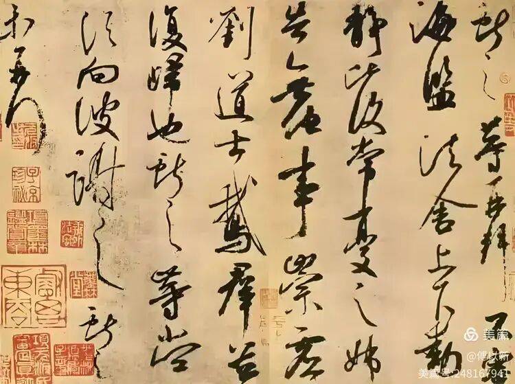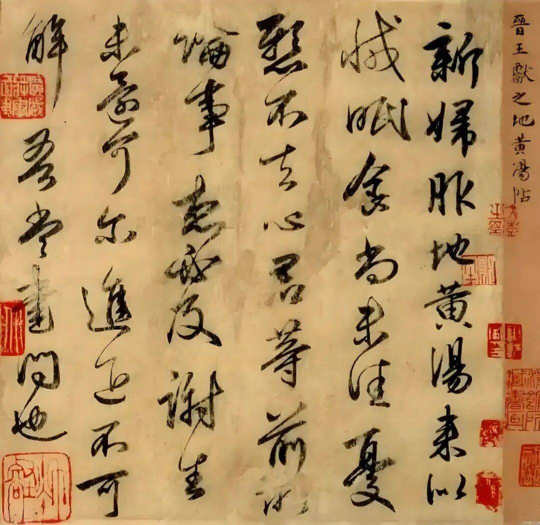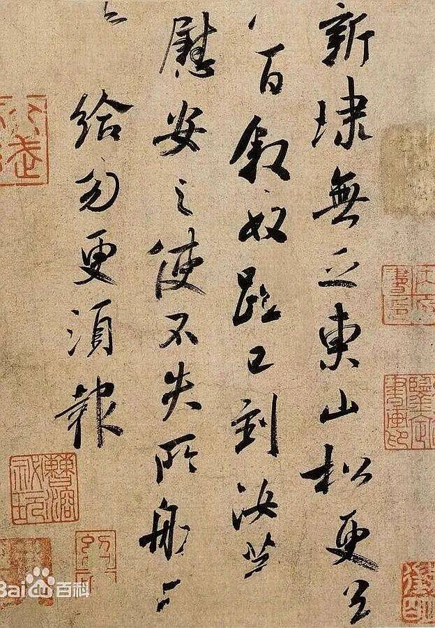 被乾隆奉为至宝的《中秋帖》,更是王献之的草书名作。但这件作品却有许多疑点,首先,文章无法识读。“中秋不复不得相还为即甚省如何然胜人何庆等大军”。区区22字,让后世费尽猜测。明董其昌考证,《中秋帖》前还有“十二月割”等字,“庆等大军”以后也还有文字,中也有其他字,应是王献之真迹被裁割者。所以,《中秋帖》虽然也被称《十二月帖》,但已不见“十二月”,它与《十二月帖》是完全不同的两件作品。
