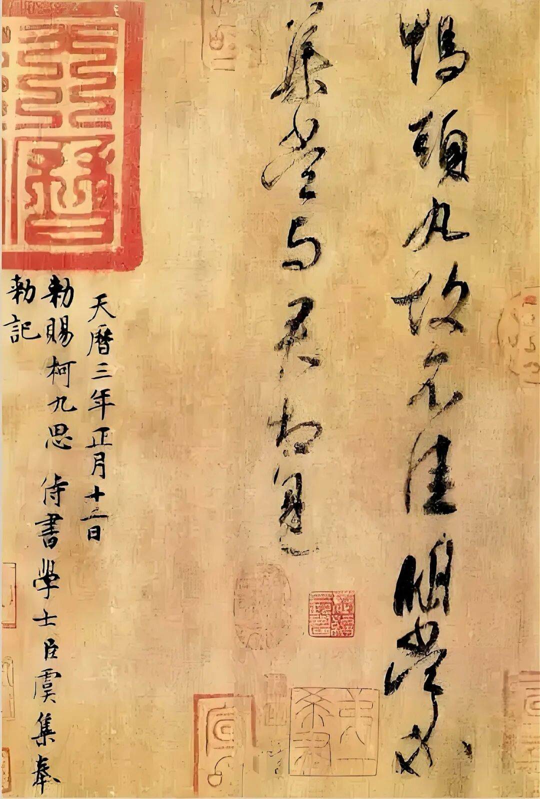 《中秋帖》的确神采飞扬,连绵跌宕。因为不是钩填本,所以董其昌认定是王献之真迹。墨迹本《中秋帖》虽然出于《十二月帖》,但用笔则大不相同,一丰肥,一瘦劲。清人吴异一口咬定《中秋帖》是米芾所临:“书法古厚,墨彩气韵鲜润,但大似肥婢。虽非钩填,此帖曾见于米氏《书史》,自为元章新临无疑”。 他的观点颇得学者们赞同。大书法家米芾是公认的书画造假高手,他之所临肯定最能得献之意趣。但《中秋帖》与原本的《十二月帖》文字并不重合,属于割临。如果真是米芾所临,那么他为何割临,只能是千古之谜了。 董其昌在《中秋帖》后题跋中说:“米老尝云,人得大令书,割剪一二字售诸好事者,以此古帖每不可读,后人强为牵合,深可笑也”。此老莫不是以一帖“中秋”笑弄后人吧,其中就包括了这位董其昌。
