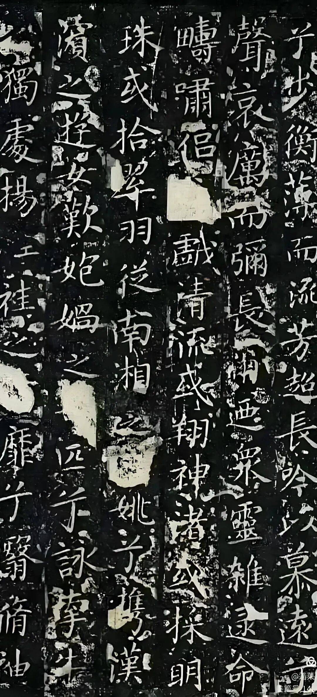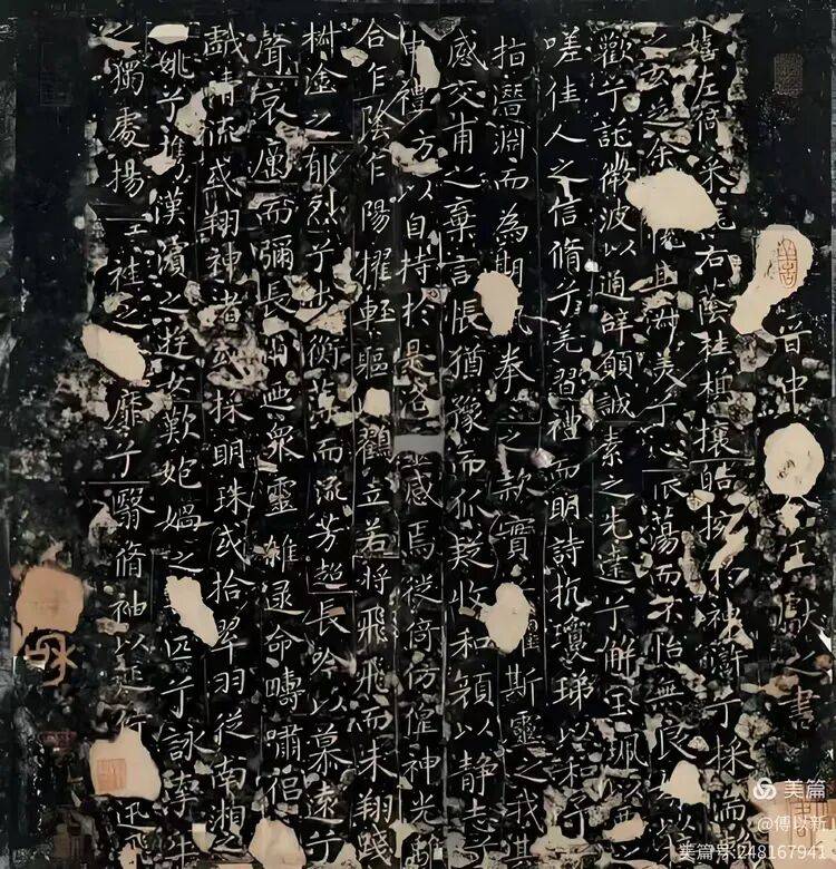 王献之的楷书在父亲王羲之楷法的基础上,增加了超逸和劲美, 《洛神赋十三行》是其小楷代表作。其字中的撇捺等笔画往往伸展得很长,笔力遒劲,毫无轻浮软弱之态。字体匀称和谐,而各部分的组合中,又有细微而生动的变化,字的大小、字距、行距皆变化自然,灵秀流美,疏密得体、揖让分明、俯仰自如。笔法不再带有钟繇楷书中的古拙隶意,字形也由横势变为纵势,已是完全成熟的楷书之作。《十三行》原作写在麻笺上,内容是三国时魏国著名文学家曹植的《洛神赋》,但流传到唐宋时已残损,宋人根据所余的十三行真迹刻石,再以后真迹亡佚,遂以拓本流传,被后人誉为“小楷之极则”。