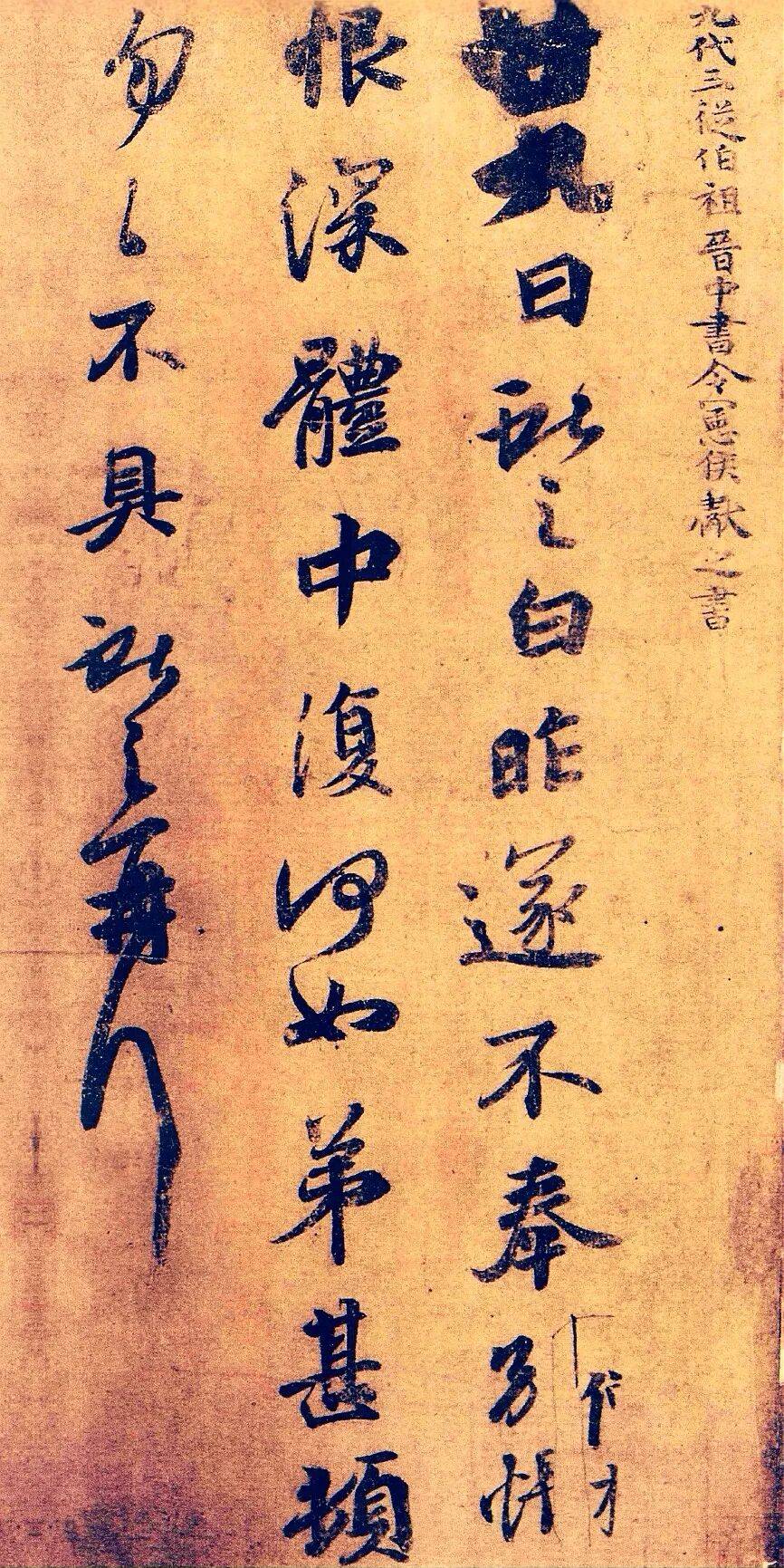 他曾给前妻写过一封信,后来收在《淳化阁帖》里,就是有名的《奉对帖》。信是这样写的: