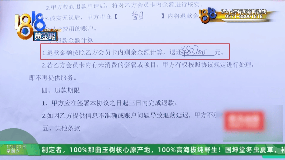 12月19号那天,经过民警协调,这家店把老人还没做的项目退掉了,退了83700元。