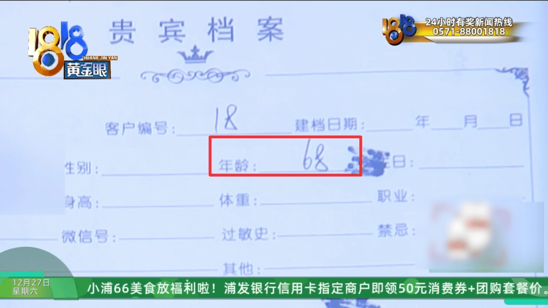 贵宾档案上金先生母亲的编号是18号,建档日期是空白,注明当时的年龄是68岁,金先生的母亲今年72岁,他倒推回去确定母亲四五年前,就在这家“至臻康妍”养生馆做项目了。