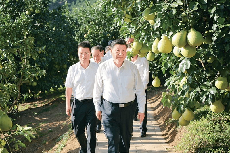 2025年11月7日至8日,中共中央总书记、国家主席、中央军委主席习近平在广东考察。这是7日下午,习近平在梅州市梅县区雁洋镇南福金柚种植基地考察。 新华社发 肖翊/摄