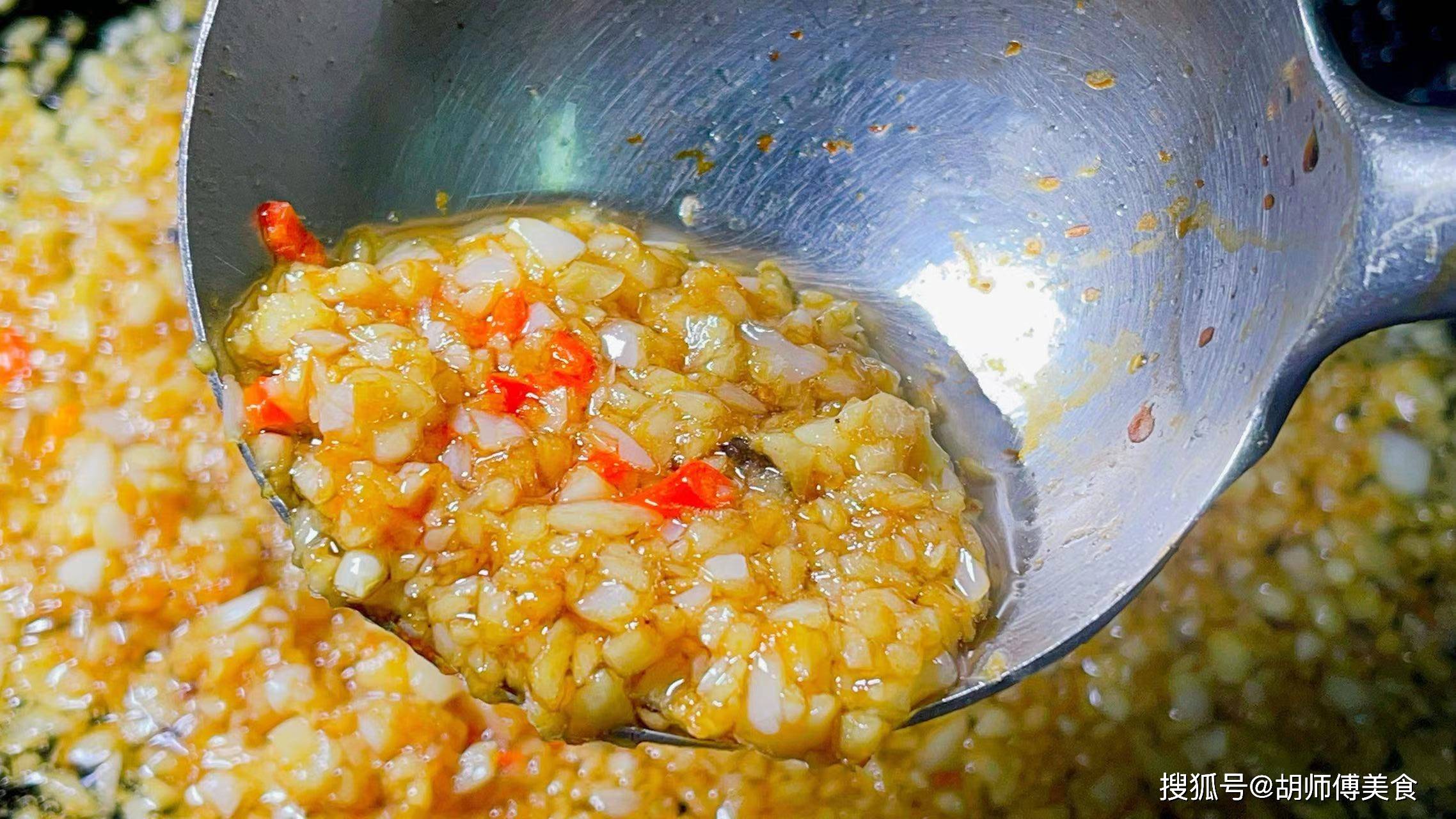 第四步:锅中放入适量油,等油烧热后,把一半的蒜末放入锅中,大火将蒜末炸成金黄色后,再将另一半蒜末放入锅中,炒20秒即可关火,接着再把蚝油、小米椒放入蒜末中拌匀即可备用。