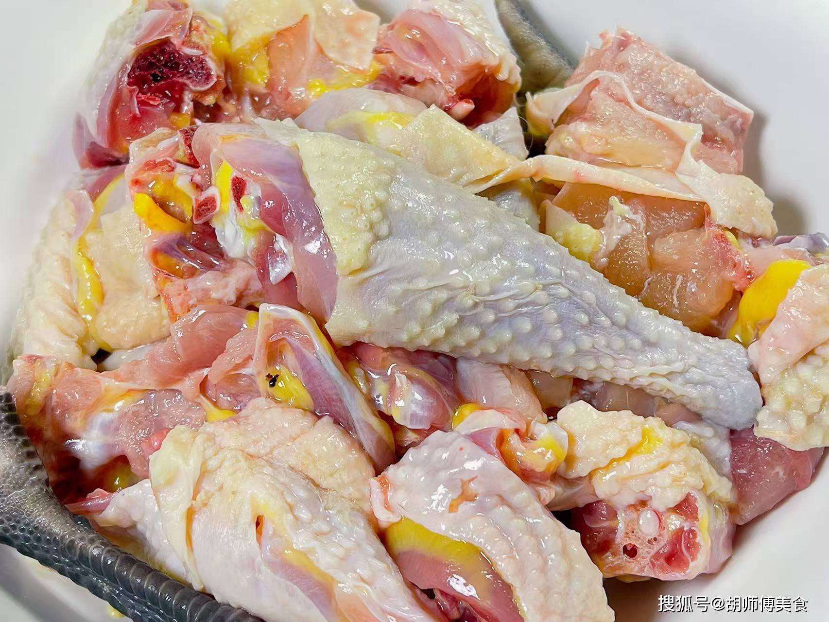 第二步:将老母鸡剁成大小适中的块状后,用自来水冲洗一下即可。