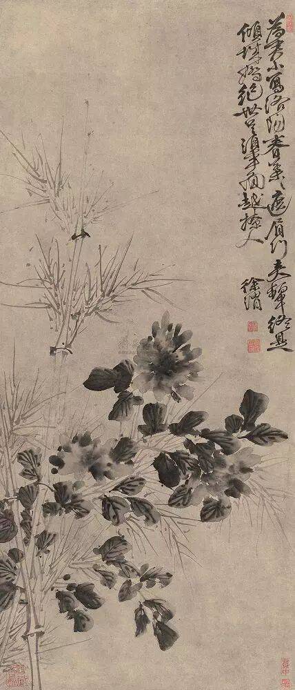 徐渭 墨竹牡丹 立轴 水墨纸本 106×32.5cm