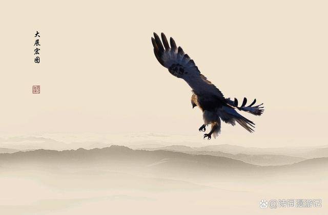 “鱼翔浅底” ——俯视水面,鱼儿在浅水中轻盈游动,表现出宁静与自然的和谐美。 这些景象交织成一幅立体的秋景画,显示出毛主席心中对大自然的热爱以及对自由的向往。 “万山”指的是橘子洲对面的岳麓山群峰,枫叶最为美丽,深秋时节,霜叶如花,云蒸霞蔚,气象万千。通过“层林尽染”来传递秋天的色彩变化,描绘出秋日的壮丽景观。 “鹰击长空”中的“击”字恰到好处,传达了鹰鸟以锐利而有力的动作,飞翔在空中,象征着毛主席与革命力量的奋力拼搏。