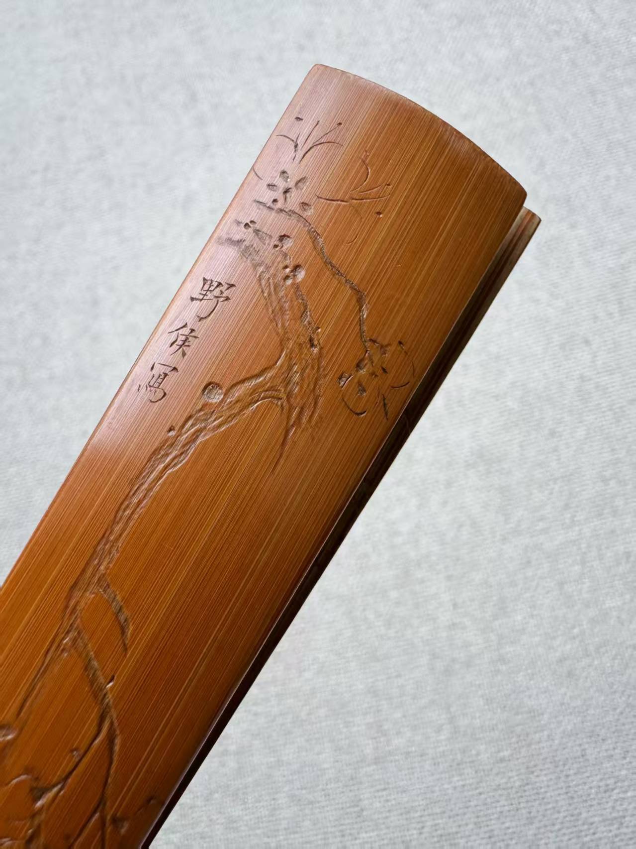 张宗宪祖父张楫如亲刻的双面梅花玉竹扇骨,穿越百年的文人信物,170万落槌,加佣近二百万,105年后的今天,梅枝仍在竹上绽放,百年孤品文人骨,一刀刻尽江南春。
