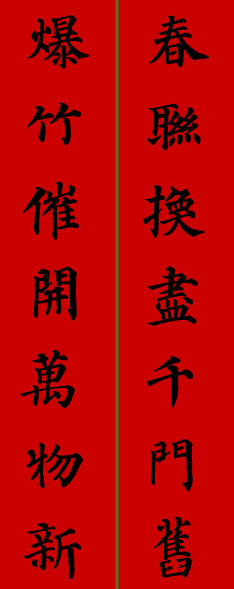 春联,作为一种独特的汉族文学形式,对于我们而言,她更是我们心仪的书法作品。她用简洁而精巧的文字描绘时代背景,抒发我们美好的愿望。每逢春节,家家户户都要精选春联,装点门面,增加喜庆气氛。