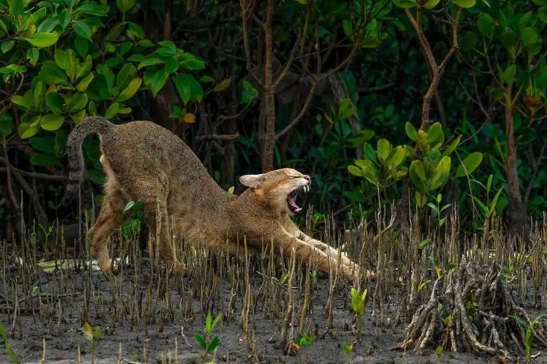 ▲ 这只丛林猫正在打哈欠。