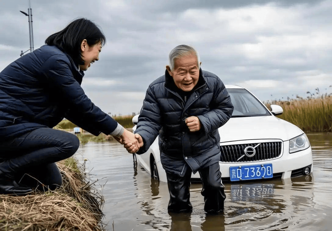 女子开车不慎掉进池塘,73岁大爷跳河救人,女子事后上门感谢,