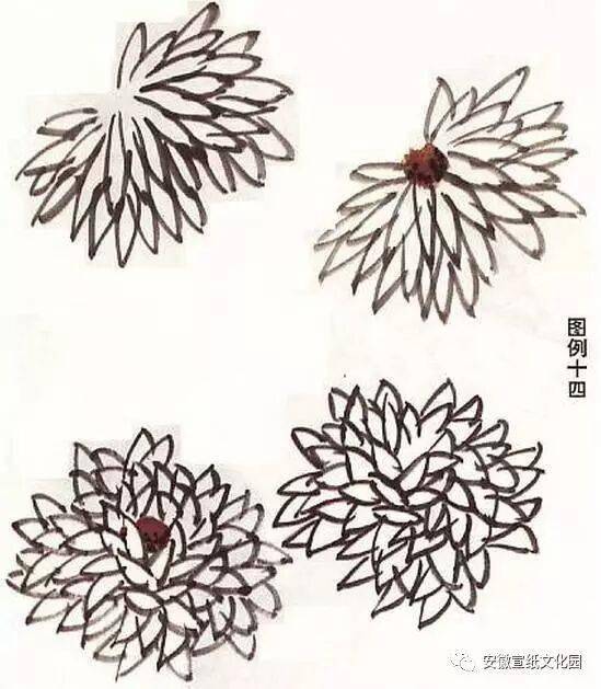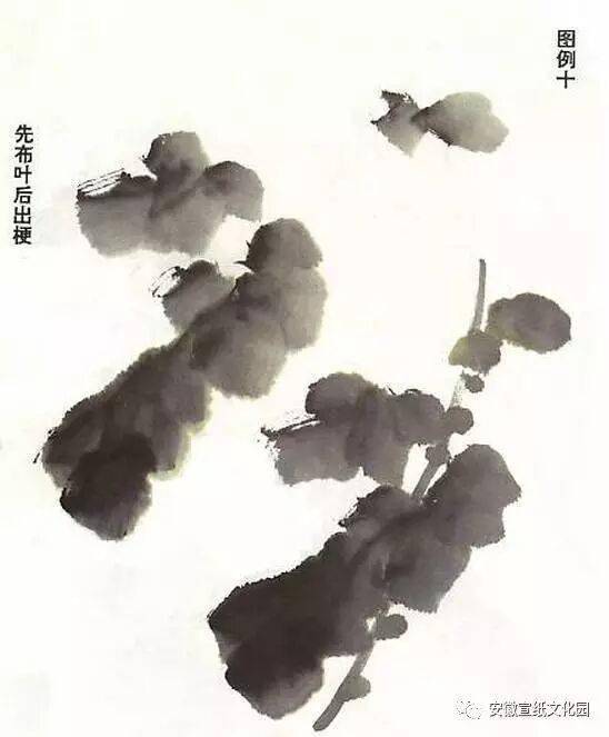 画叶称撇叶,意味其用笔同于楷书的“撇”法。撇叶一般用浓墨,与淡色花相互映衬,但有时考虑到层次也用淡墨。每株兰叶在五笔至七八笔之间,先从简单入手练习右撇式和左撇式。