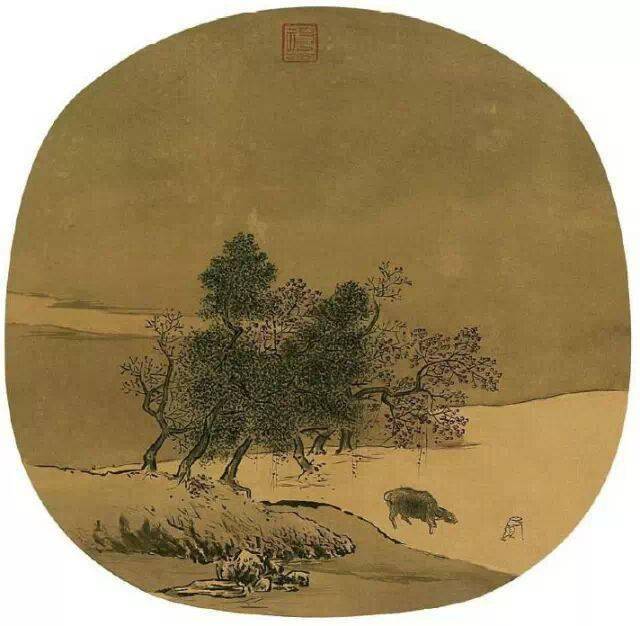 点又可以调节画面的气氛,使画面充实,产生苍茫郁茂的感觉。点还可以调整画面的结构,补充原有的虚实不足。费汉源《费氏画式》中谈到:“若笔有脱节,苦可以接也。皴有遗漏,苔可以补也。”