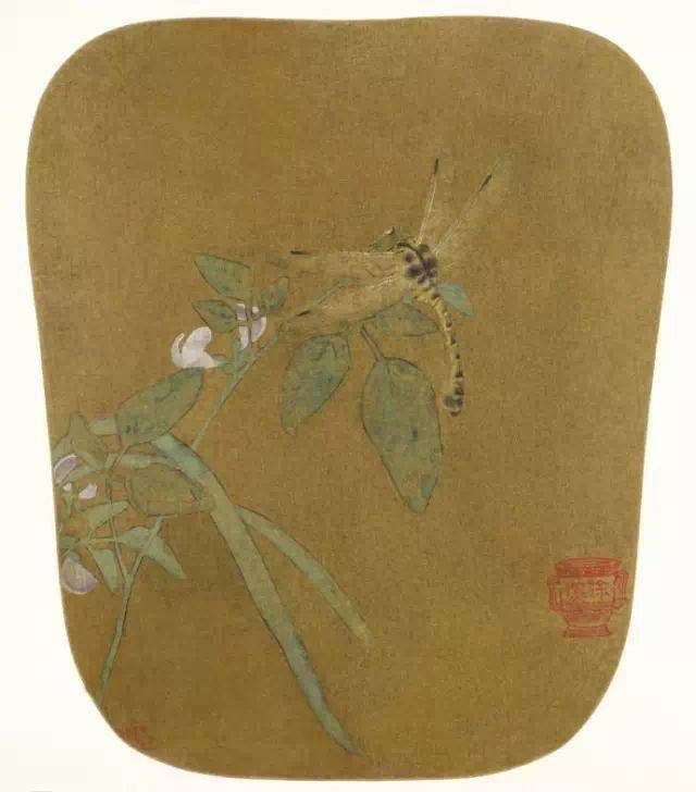 白石老人在60岁左右,趁目力健明时,画了许多工笔昆虫,如蜻蜓、蝴蝶、蝈蝈、蟋蟀、蚱锰等等。到了80岁左右衰年变法取得成功的时候,再以大写意的笔法添补花卉成画。《枫叶寒蝉》就是这样产生的佳作。挥洒而就的墨色枝干上数片艳红的秋枫,一只精绘的工笔知了正停在红枫上,在红与黑、工笔与写意的强烈对比中,一片充满生气的秋光跃然纸上。