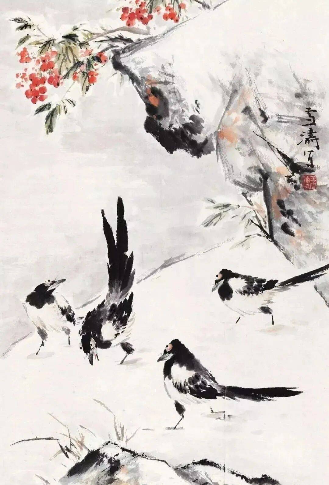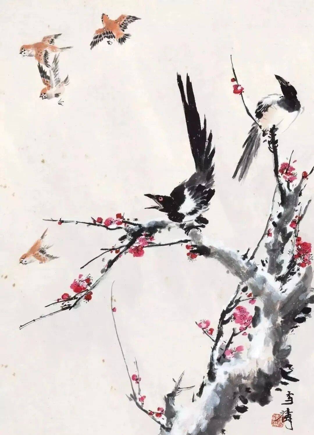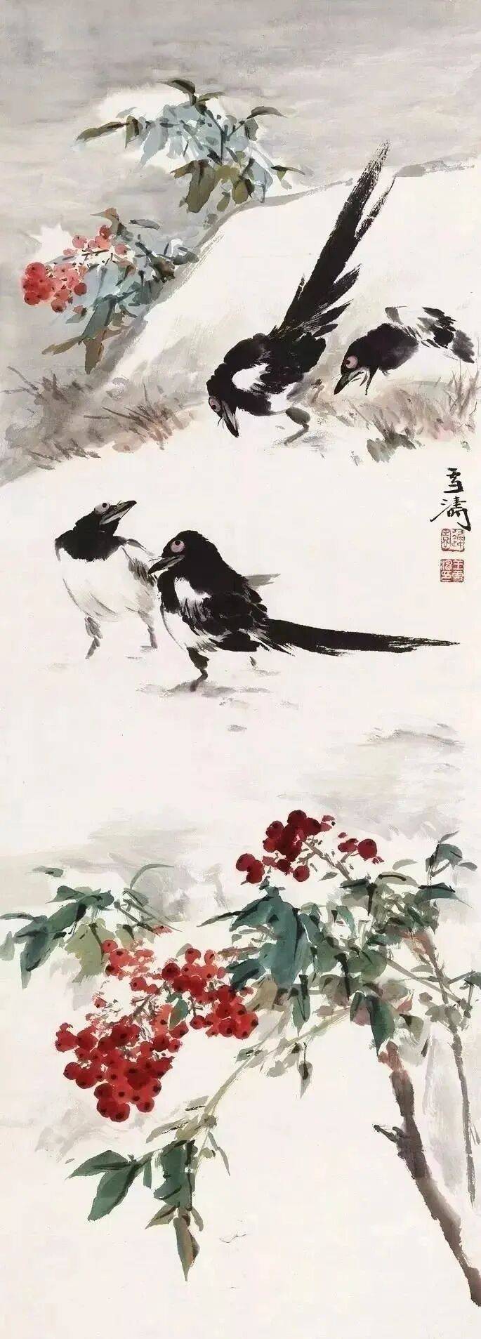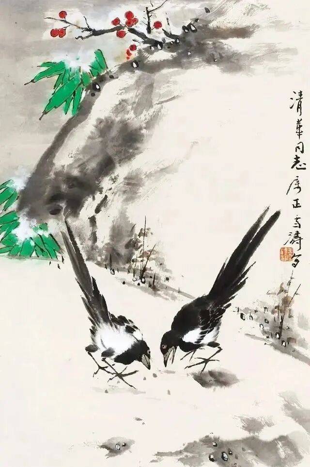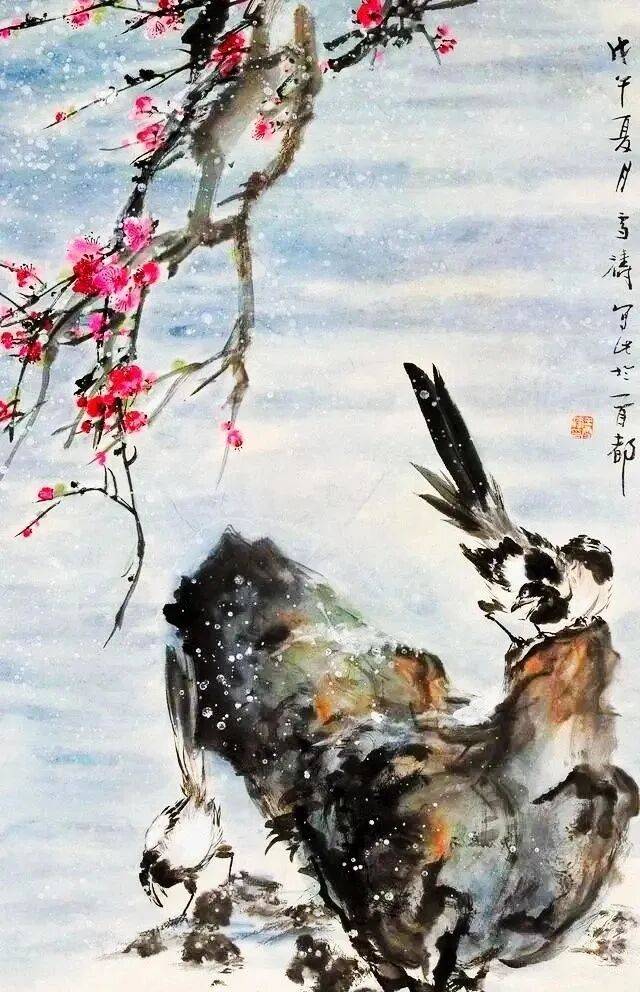 自古以来,中国画有关雪景题材的作品以山水画居多,花鸟画呢?少之又少,著名中国画大师王雪涛先生一组雪景花鸟画,冰清玉洁的气息,清新典雅;冷逸空寂的画面,让人赏心悦目。