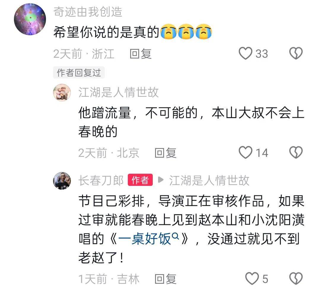 这不,就在近日,有多位媒体人爆料赵本山,小沈阳将参加马年春晚,具体的作品名称是《一桌好饭》,包括但不局限于“长春刀郎”、“演唱会”、“钮钴禄红豆”等